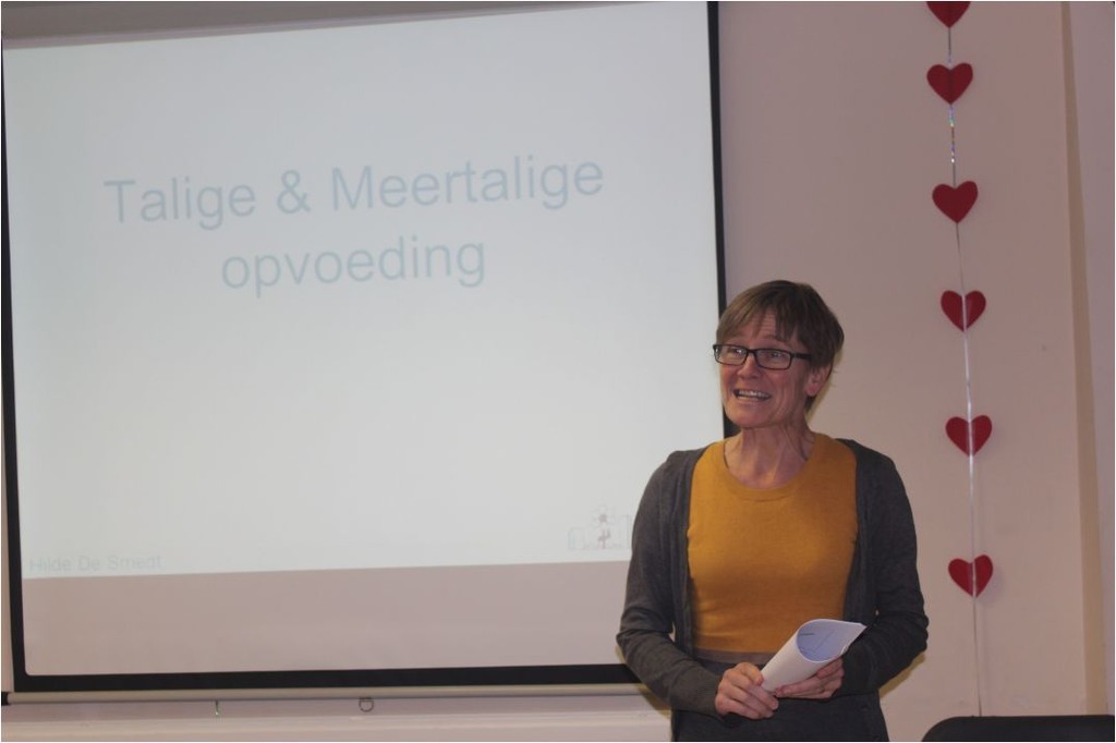 Daha sonra söz alan Foyer Derneğinden logopoed Hilde de Smedt ise konuşmasında şunları söyledi. Ana dilini iyi kullanan diğer dilleri de iyi kullanabilir. Anaokulundan ortaokul bire kadar Fransızca ya da flamanca görüyorsa ortaokuldan sonra üçüncü bir dili de rahatlıkla öğrenebilir. Anne baba özellikle ana dillerini evde kullanmaları gerek. Ana dili ne kadar iyi olursa diğer dilleri de iyi öğrenirler. Eğer anne ve baba farklı millettense ikisi de kendi dillerini evde öğretmeleri gerekir. Aileler çocuklarına yardımcı olma açısından bulundukları ülkenin dillerini kesinlikle öğrenmeleri gerekir. Çocuk derslerinde dili anlamayıp başarı elde edemiyorsa bir öğretmen tutup derslerinde yardımcı olmaları gerekir. Çocuk dili bilemezse derslerinde de başarılı olamaz. Çocuklar erken yaşlarda dili daha iyi öğrenirler. Anne babaların erken yaşlarda çocuklarla ses oyunları oynamaları ve çocuklarını dil öğrenmeye tevsik etmeleri gerekir. Çocuklar 5/6 yaşlarına kadar dili kendiliğinden öğrenirler, iç gözleme duyarlı değildirler. 6/7 yaşından itibaren bilinçli bir biçimde dili öğrenirler, iç gözleme ve içeriğe ve şekle duyarlıdırlar.
