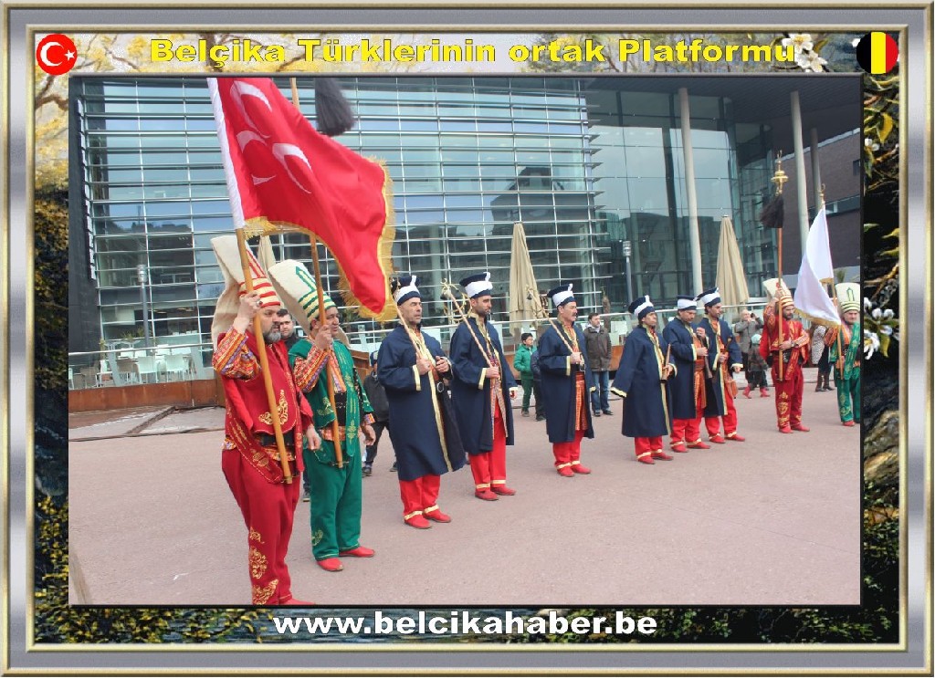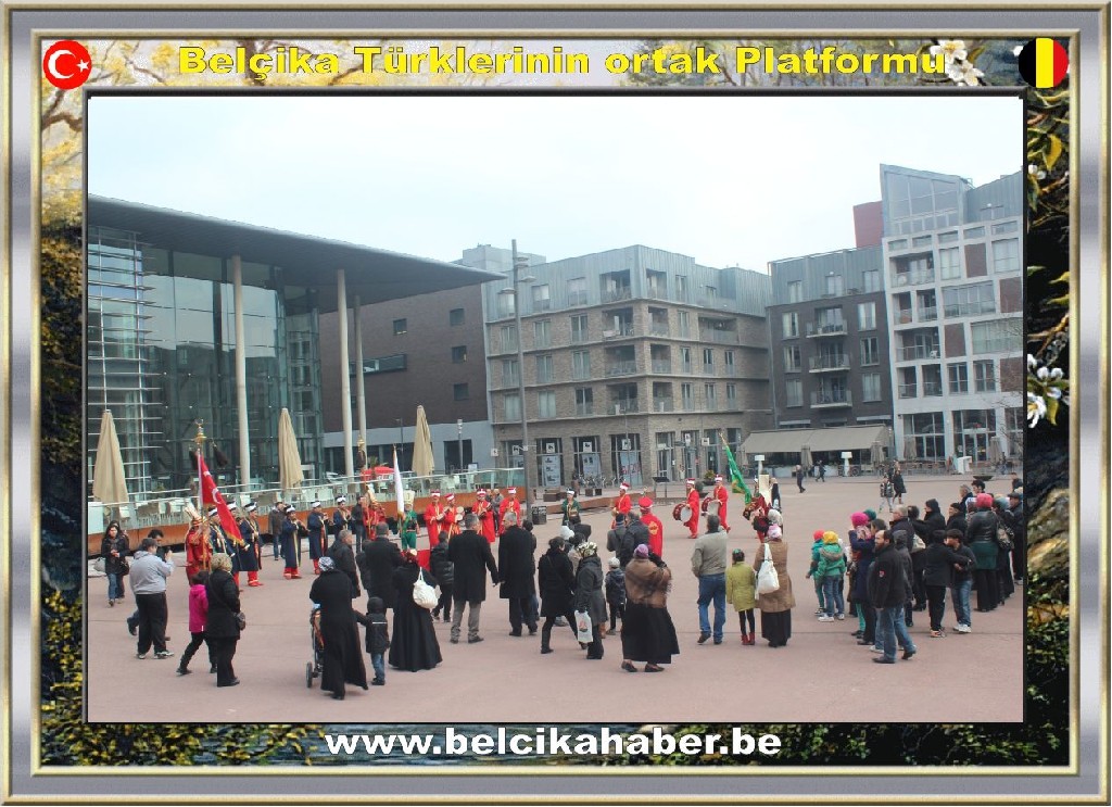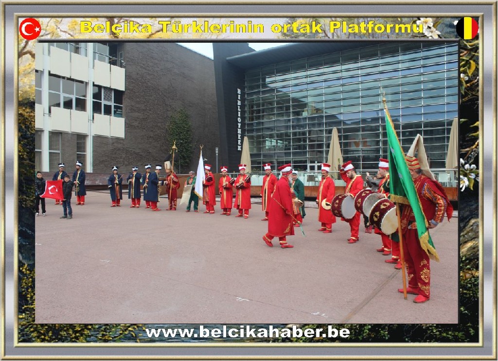 Belçikalı halk oyunları ekiplerinin de eşlik ettiği mehteranın, belediye binası önünde sunduğu gösteri beğeni topladı.