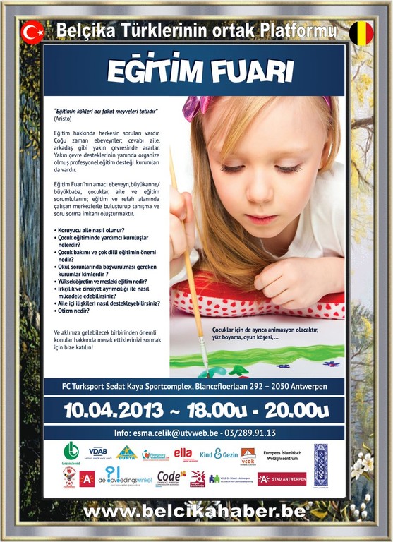Otizm nedir? Ve aklınıza gelebilecek birbirinden önemli konular hakkında merak ettiklerinizi sormak için, Türk Dernekler Birliği’nin Anvers Belediyesi eşgüdümünde yürüttüğü “Eğitim geleceğin aynasıdır” projesi kapsamında düzenlenecek ‘Eğitim Fuarı’na katılın!