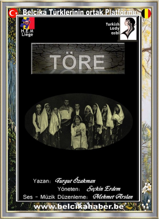 Turkish Lady ve H.E.M Dernekleri olarak, "TÖRE" Adli Tiyatro gösterisi“ni 21 nisan 2013 pazar günü Saat 17:30'da, Salle des Martyrs Place des Martyrs, 22 1000 Bruxelles' adresinde bulunan salonda düzenleyeceğiz.