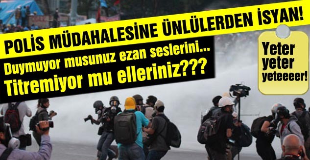 Taksim'deki Gezi Parkı'na düzenlenen polis müdahalesine ünlüler Twitter'dan tepki gösterdi.