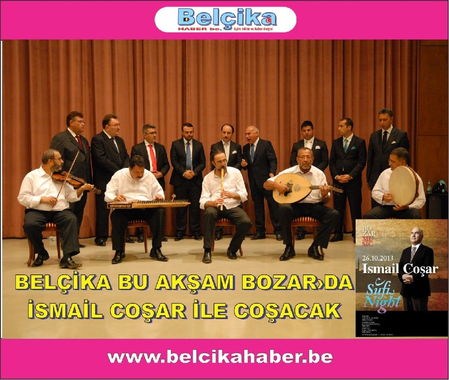 Türkiye’nin en ünlü imam hatiplerinden biri olan İsmail Coşar'ın katılımı ile Başkent Brüksel’de bulunan BOZAR Sanat Kültür Merkezinde Kur’an, Kaside ve İlahiler okuyacağı bir Sufi Gecesi Resitali yapılacağı bildirildi.