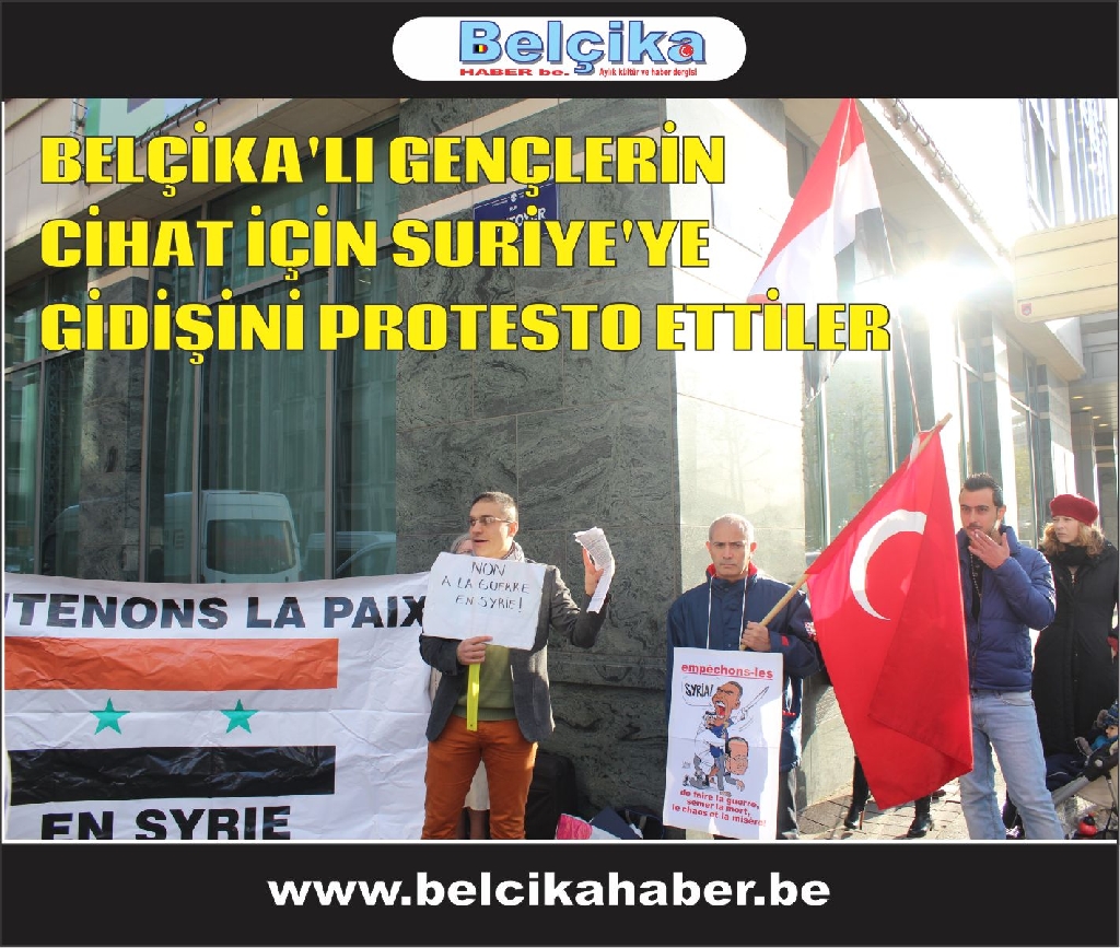 Suriye'de 3 yıldan beri süren iç savaşta muhaliflerin saflarında mücadele etmek için Belçika'dan Türkiye üzerinden Suriye'ye cihat için giden El Kaideci gençler, T.C. Brüksel Başkonsolosluğu önünde protesto edildi.
