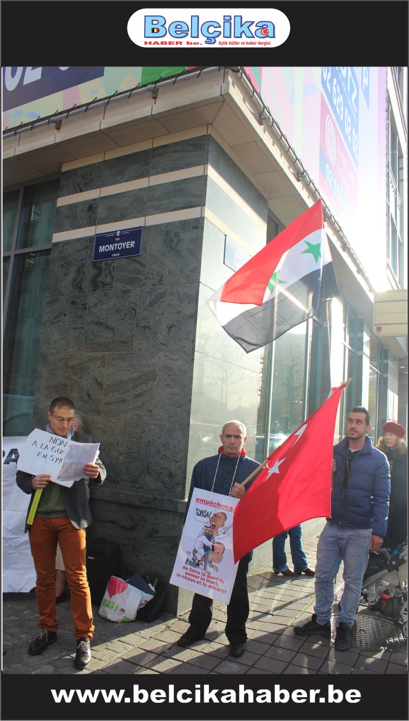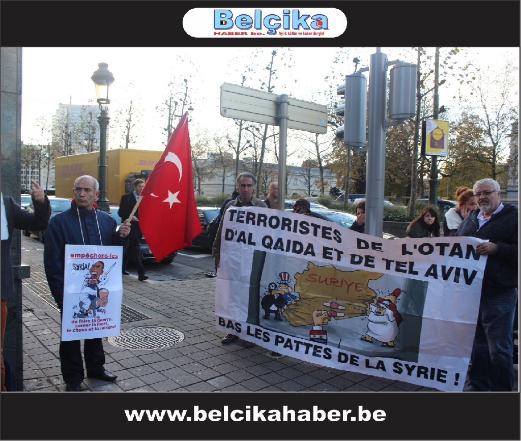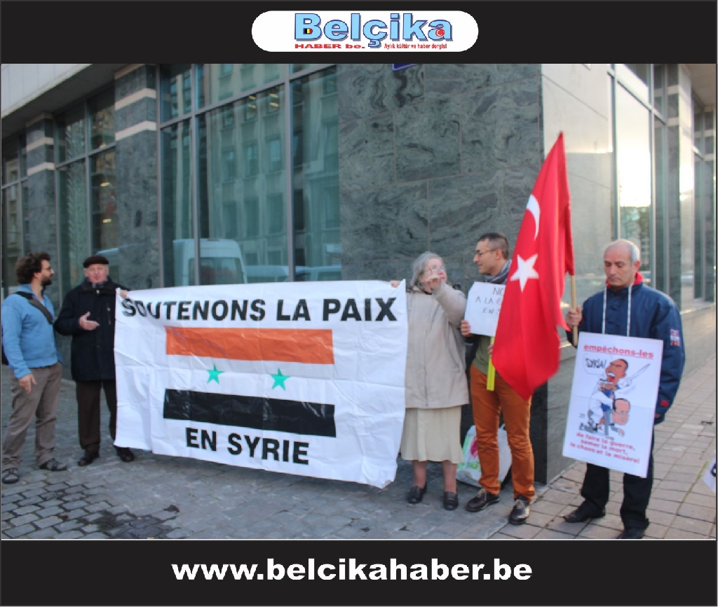 Suriye’de Müdehaleye Karşı Komite adıyla bir grup, geçtiğimiz günlerde, ellerinde pankartlar ve Suriye Türkiye bayrakları olduğu halde, T.C. Brüksel Başkonsolosluğu önünde protesto gösterisi yaptı.