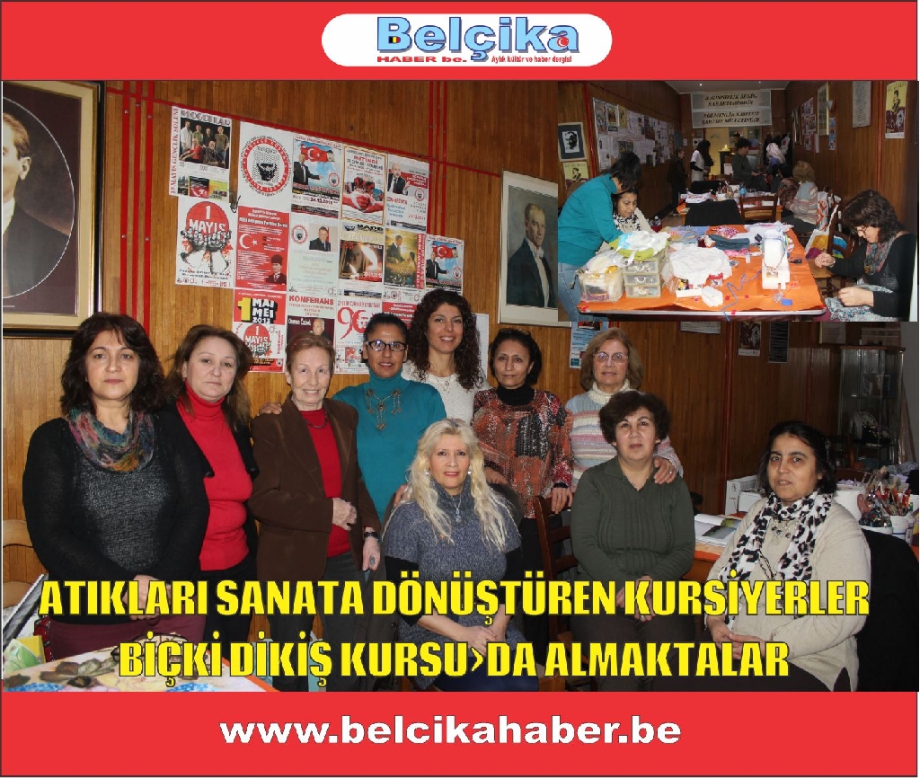Kısa adı BTKB olan Belçika Türk Kadınlar Birliği Schaerbeek'de bulunan AKM Merkez salonunda Eğitmen Leyla Teker'in öncülüğünde, düzenlenen 'Elişi Kurslarına katılan Kursiyerler, atık malzemeleri şaheserlere dönüştürmekteler.