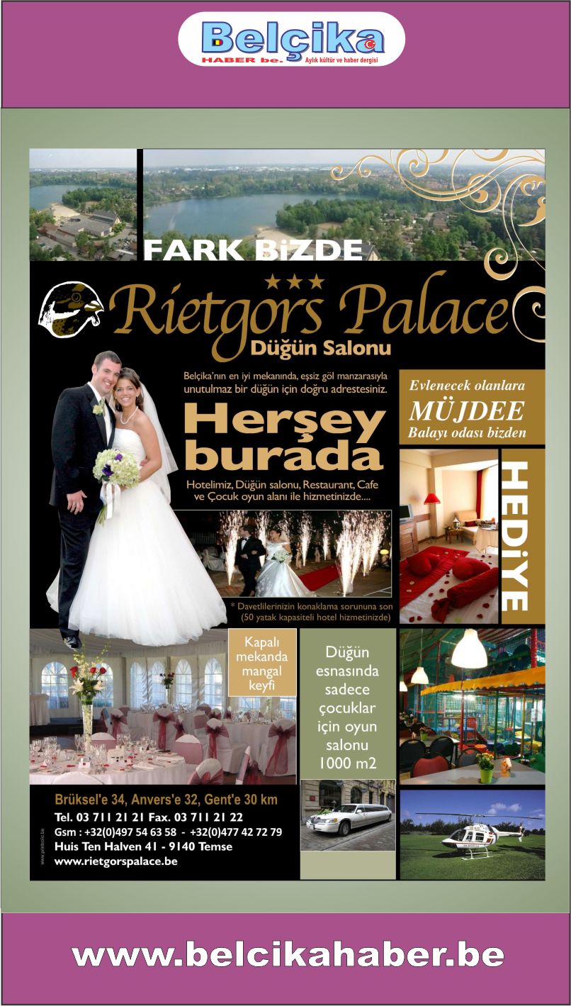 Göl manzaralı Hotel, Restaurant, Düğün Salonu, Spor ve çocuk oyun alanlarını içeren 'Rietgors Palace' davetlilerce tam not aldı. Tüm hizmetlerin profesyonelce servis edildiği, Rietgors Palace tarihi ve turistik özelliği ilede Belçika'lıların tercih ettiği çok güzel bir mekandır.