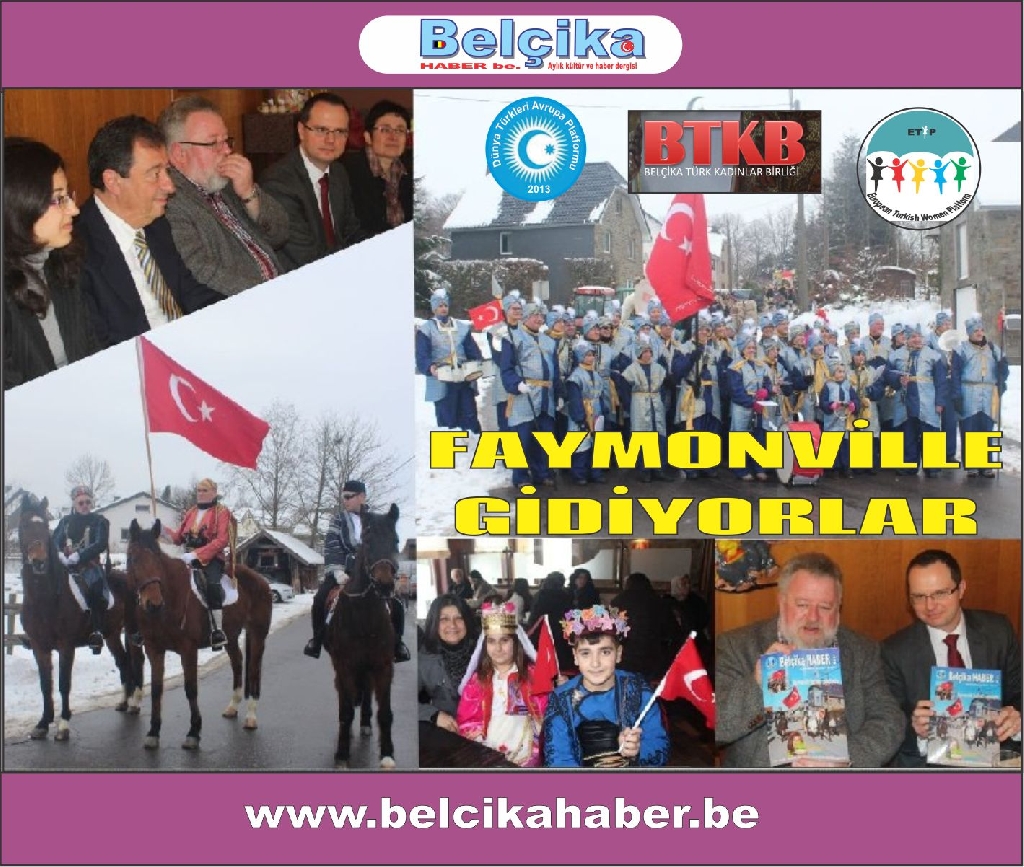 Kısa adı DÜTAP olan Dünya Türkleri Avrupa Platformu, kısa adıATKP olan Avrupa Türk Kadınlar Platformu ve kısa adı BTKB olan Belçika Türk Kadınlar Birliği ortak oganizasyonu ile '3 Mart Faymonville Türk Festivali'ne otobüs kaldırılacak.