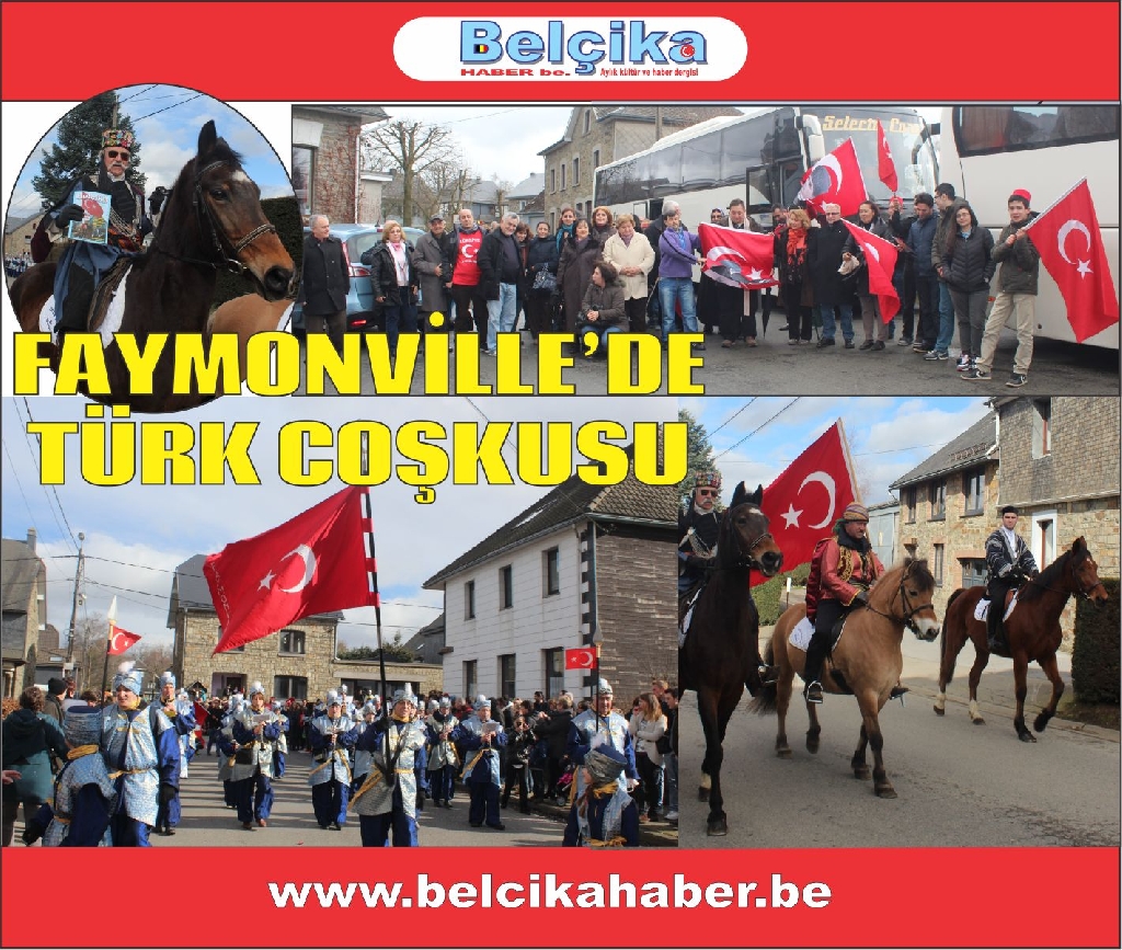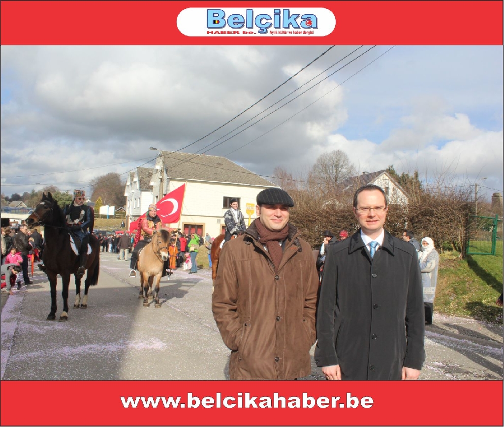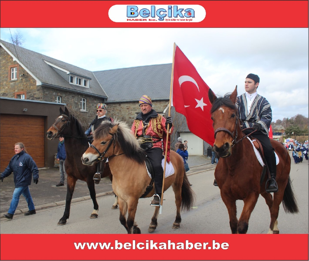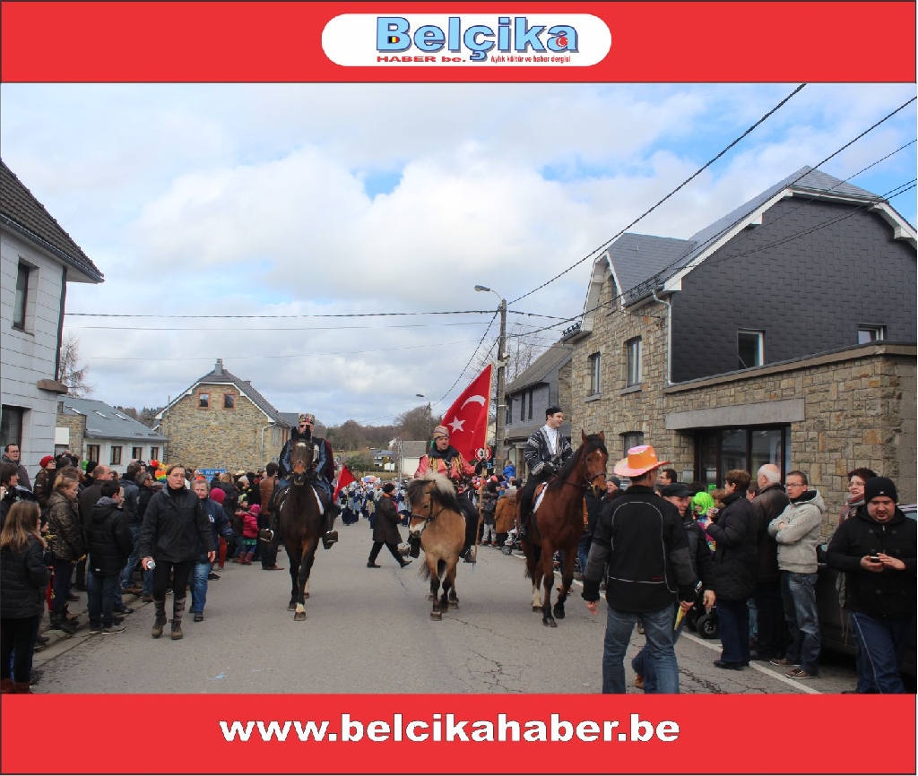 Uzun yıllardır her yıl geleneksel olarak yapılan Faymonville Türk Karnavalı bu yılda coşkuyla kutlandı. Brüksel Başkonsolosu Ali Barış Ulusoy'unda izlediği Festivalde Belçika'da yaşayan Türkler büyük coşku yaşadı. Asırlardır kendilerini Türk hissettiklerini İfade eden Faymonville köyü sakinleri ‘Karnaval’da ellerinde bayraklarla at üzerinde geçit kortejinin önünde yer almaktalar. Bando Takımı Türk bayraklarıyla atlıları takip etmekte. Kültürel giyisileriyle karnavala renk katan bir çok ulusa mensup gruplar dansları ve oyunlarıyla karnavala renk kattılar. Karnavalı izleyenler arasında Brüksel Başkonsolosu Ali Barış Ulusoy, Emniyet Müşaviri Hüseyin Tunçoğlu, Schaerbeek Belediye Başkan Yardımcısı Sait Köse, Bakan Danışmanı Nebahat Acar, Schaerbeek Belediye Meclis Üyesi Döne Sönmez, SP&a adayı Erdinç Utku, Belçika, Almanya, Hollanda ve Fransa’dan gelen Sivil Toplum Kuruluş Temsilcileri ve kalabalık Türk toplumu vardı. Havanında geçen yıllara nazaran güneşli oluşu da Karnavalı adeta canlandırdı. Kortejin geçişi sırasında ellerinde Türk bayrakları olan yüzlerce kişi büyük bir coşku yaşadı. Kimi seyircilerin konfetlerle mücadelesi gözlerden kaçmadı. Genel Yayın Yönetmenimiz Celil Gündoğdu geçen yılki kortejin önündeki Türk giysileri içerisinde Türk bayrağı taşıyan öncü atlıları Belçika Haber be.nin kapağına taşımıştı. Gündoğdu geçen yıl atlı süvaride bulunan öncülerden birisine dergiyi takdim etti. Atlı öncü elinde Belçika Haber Be.nin dergisiyle objektifimize görüntü vermesi çok anlamlıydı. Belçika Haber Be. Olarak yaklaşık 7 yıldan beri bu Karnavalı takip etmekteyiz. Her yıl olduğu gibi bu yılda buradan objektifimize yansıttığımız renkli görüntüleri haberimizin altında bulunan resim galerisinden takip edebilirsiniz. Resimler yüklenmeye devam edecektir. Bizleri izlemeye devam ediniz.