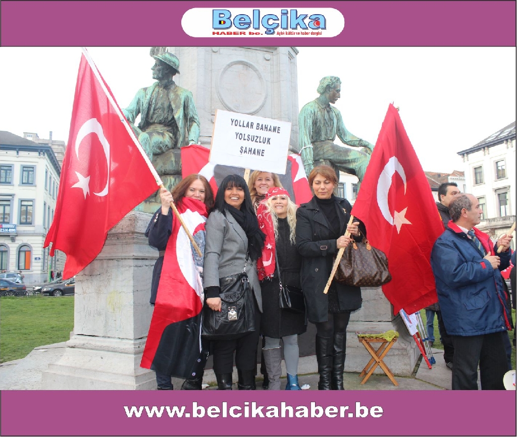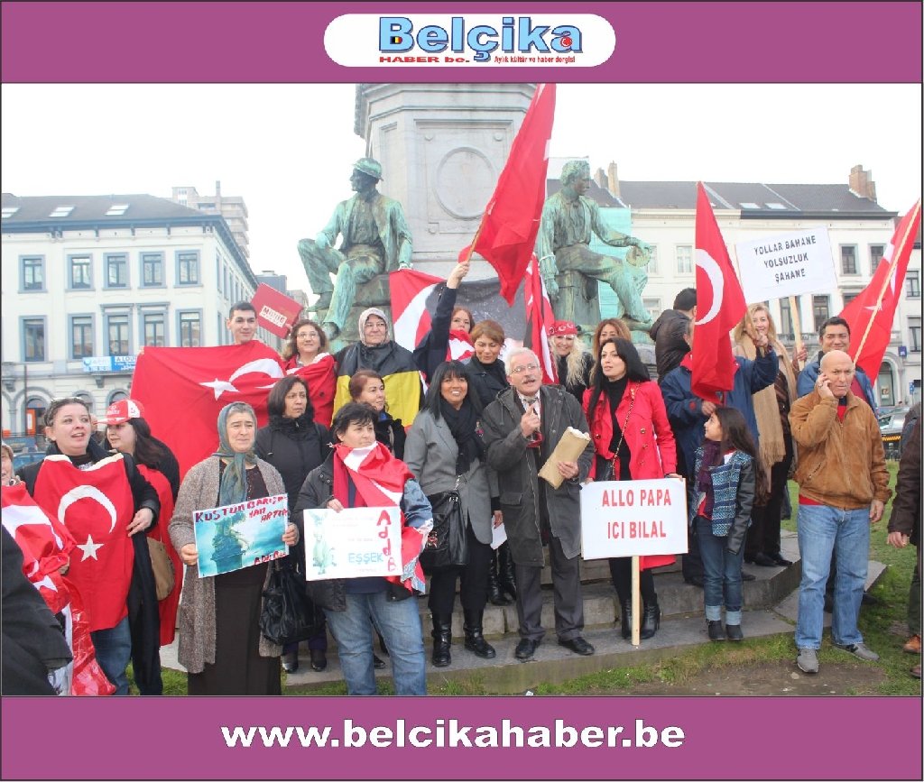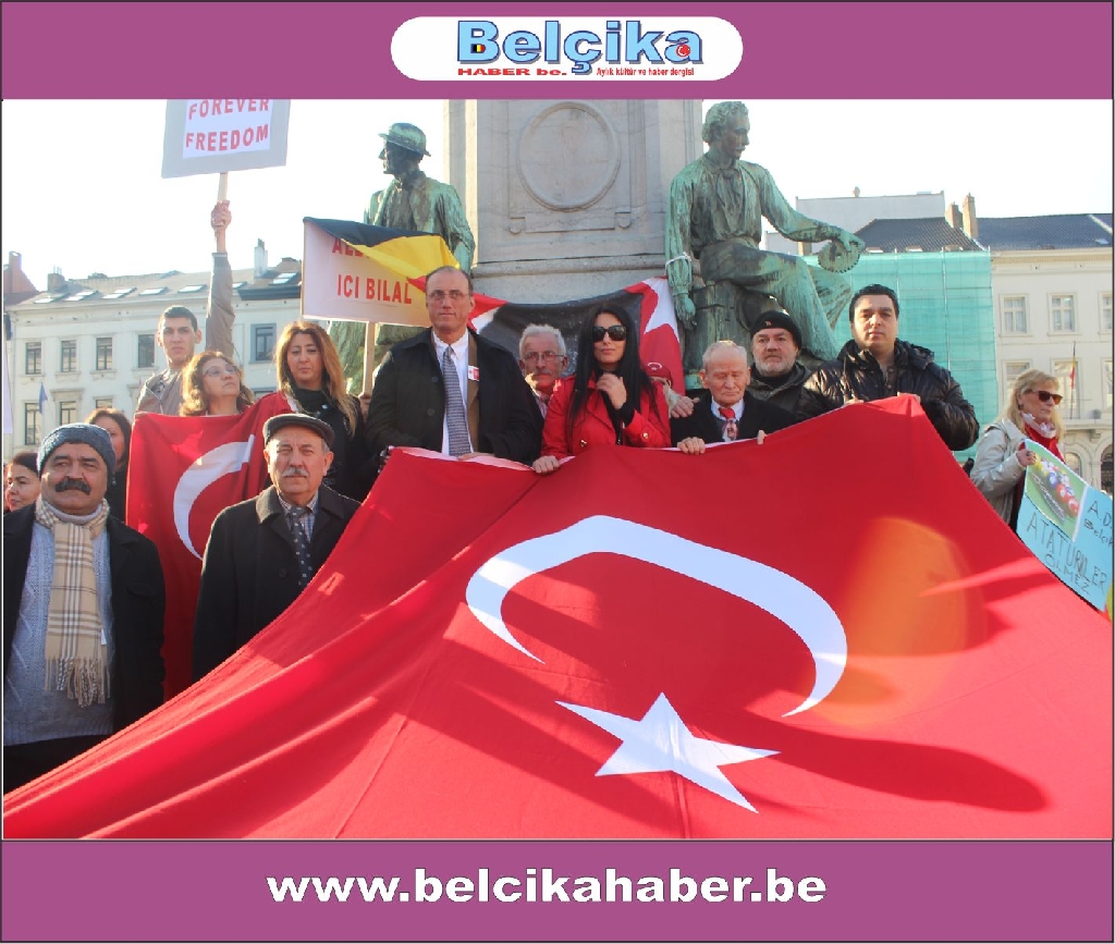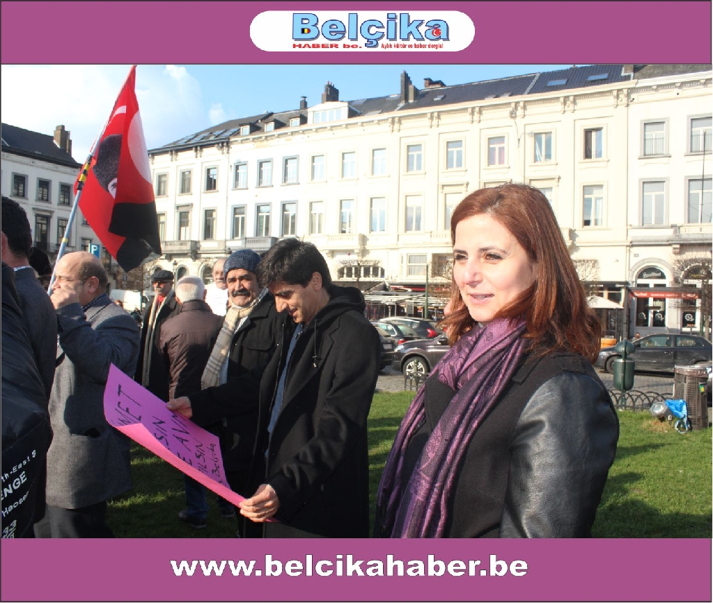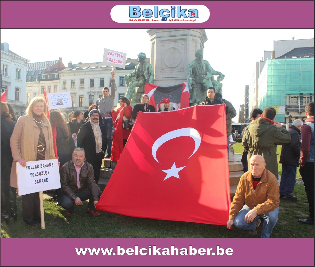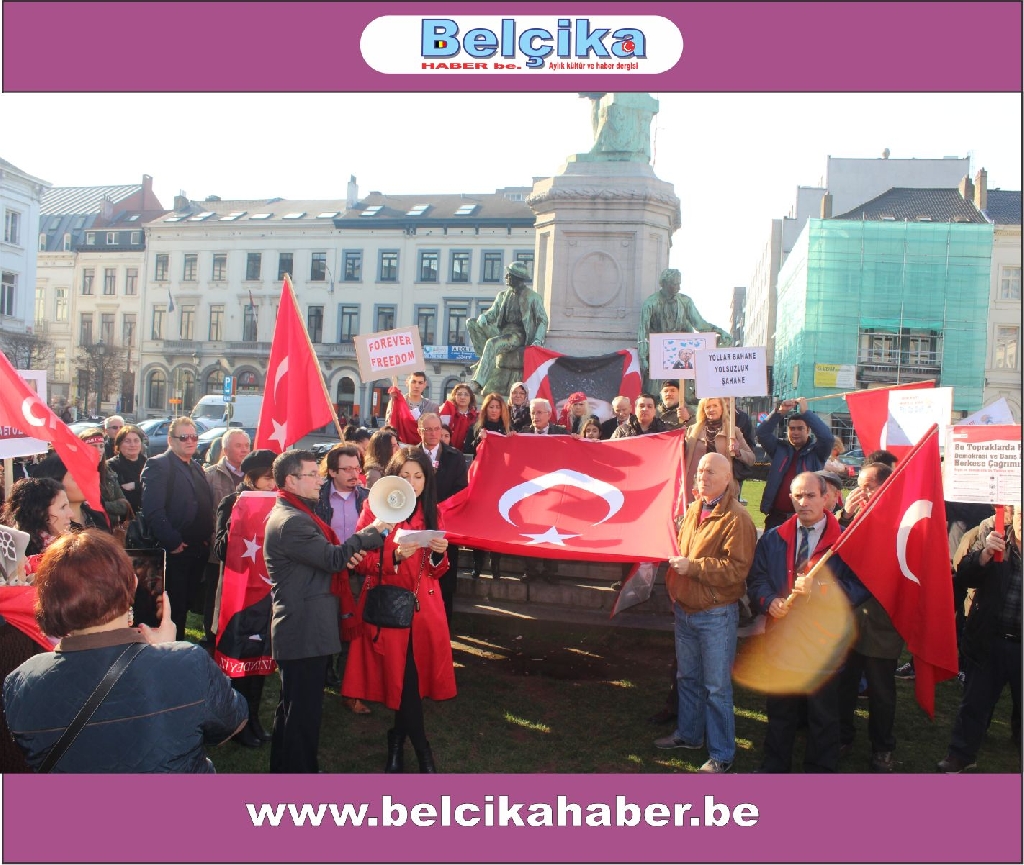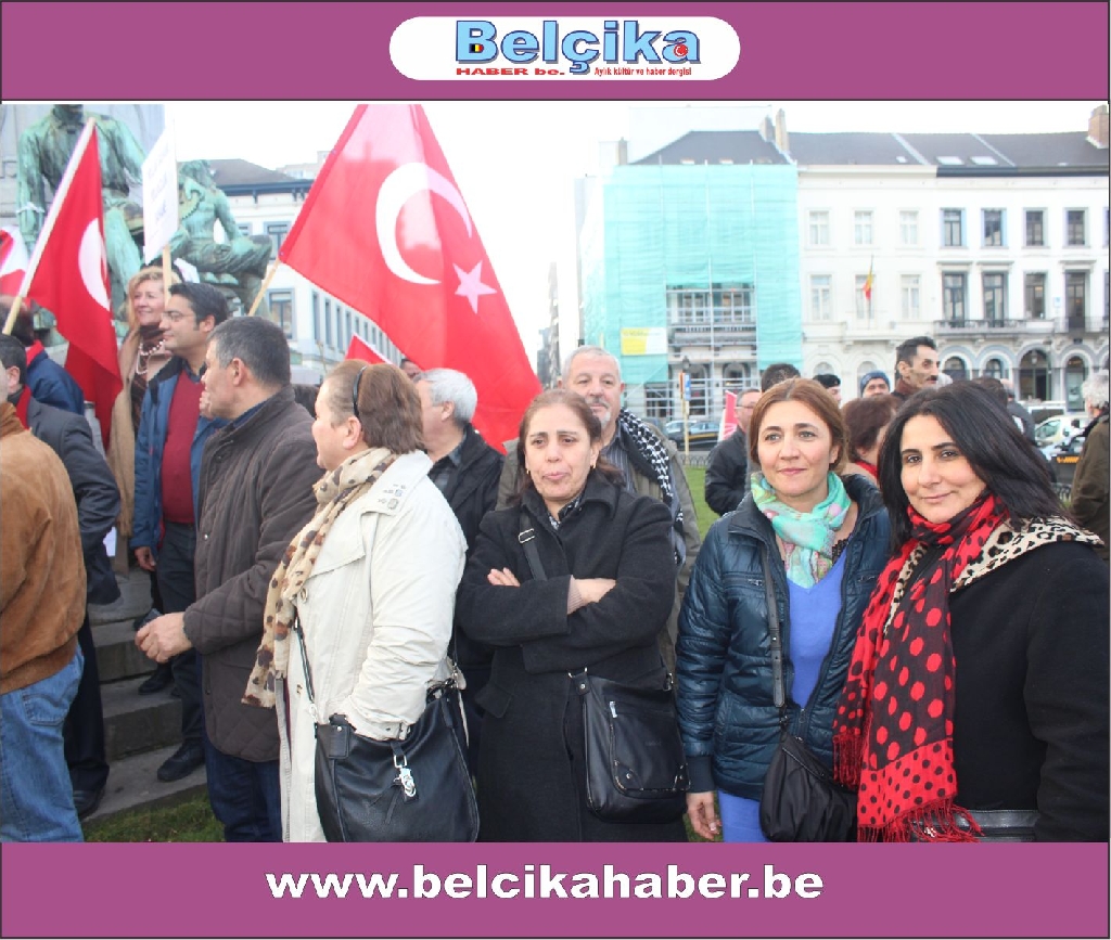 Atatürkün laik eğitimi yok etmeye çalışan dini eğitim sistemlerinin model alınmasına,erkek eğemen bir toplum oluşturulmaya çalışılmasına, bilimden uzak hurafelere dayalı bir sistem oluşturulmasına, çocuk gelinlere DUR DEMEK için buradayız. Ülkemizde umutların tüketildiği,ekonomik ve sosyal nedenlerle intiharların arttığı bir dönem yaşanırken BAŞBAKANIN ,BAKANLARININ VE OĞULLARININ YOLSUZLUKLARINA DUR DEMEK için buradayız… Belçika da yaşayan Türkler olarak Anavatanımızdaki sorunlara kayıtsız kalmadığımız için buradayız » dedi