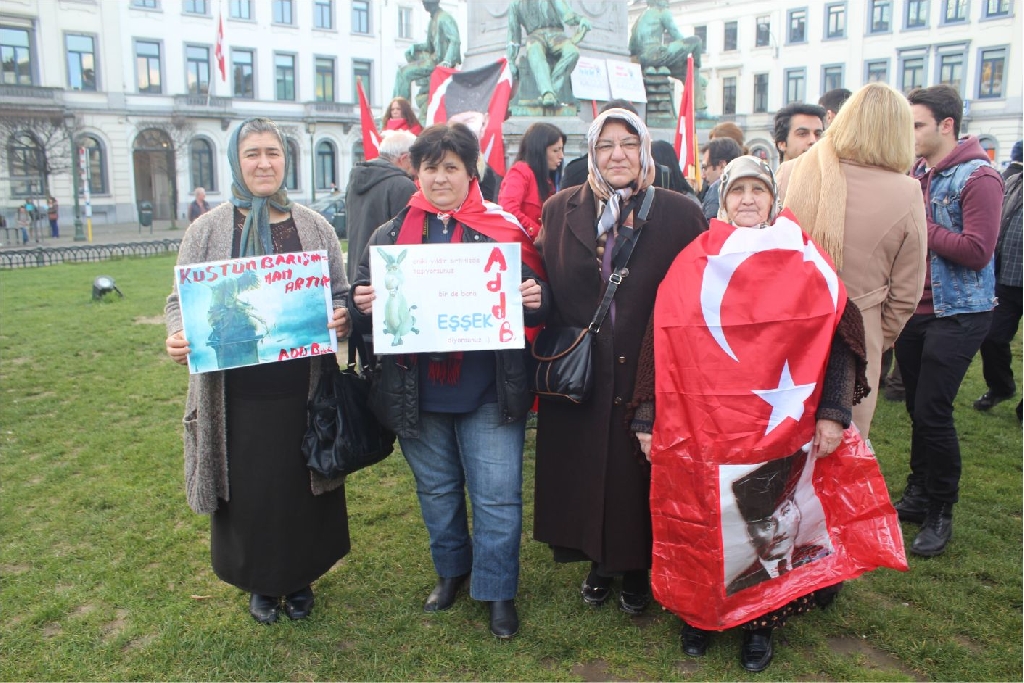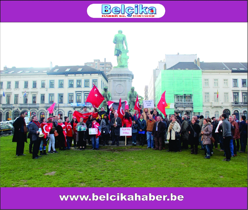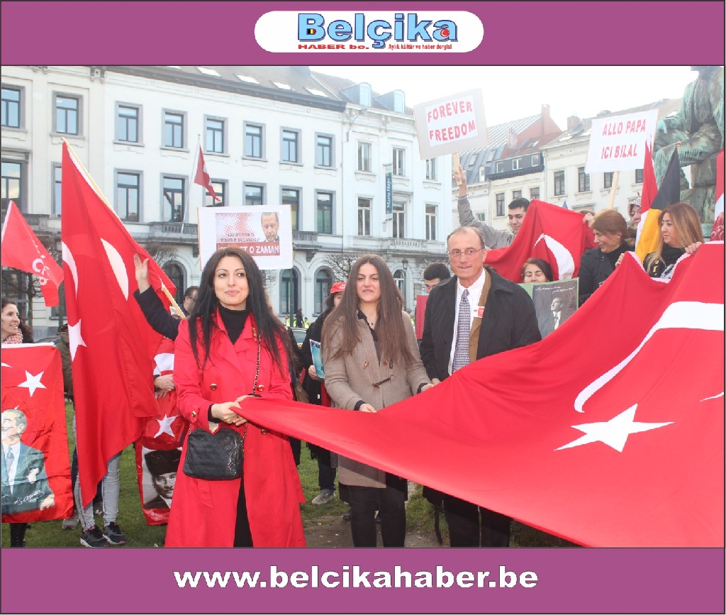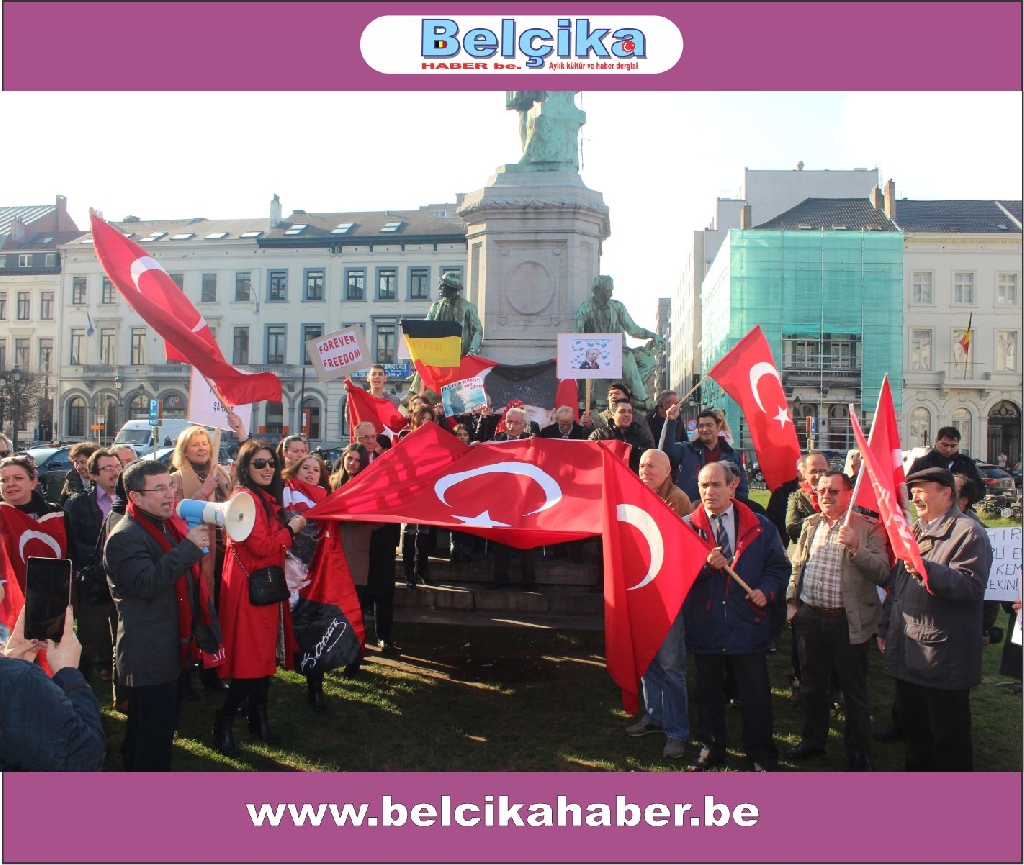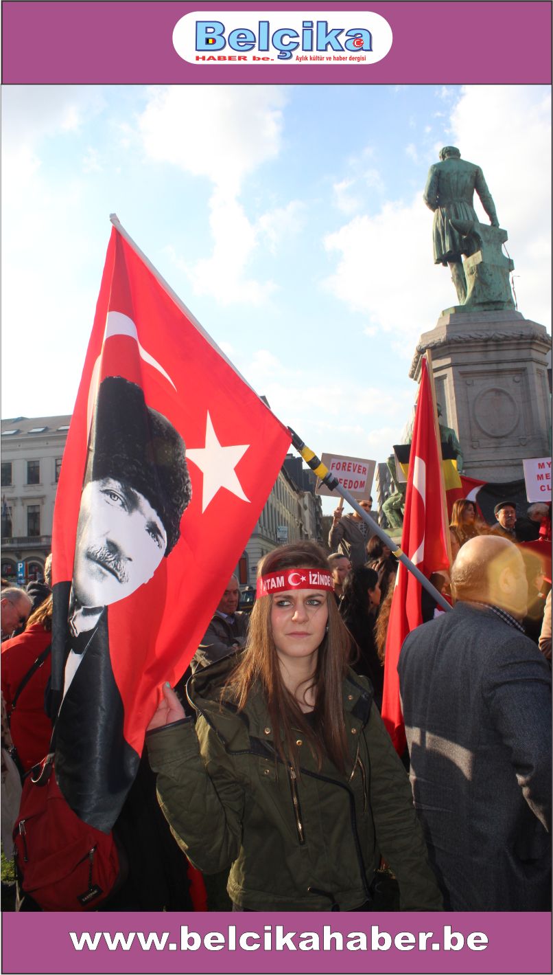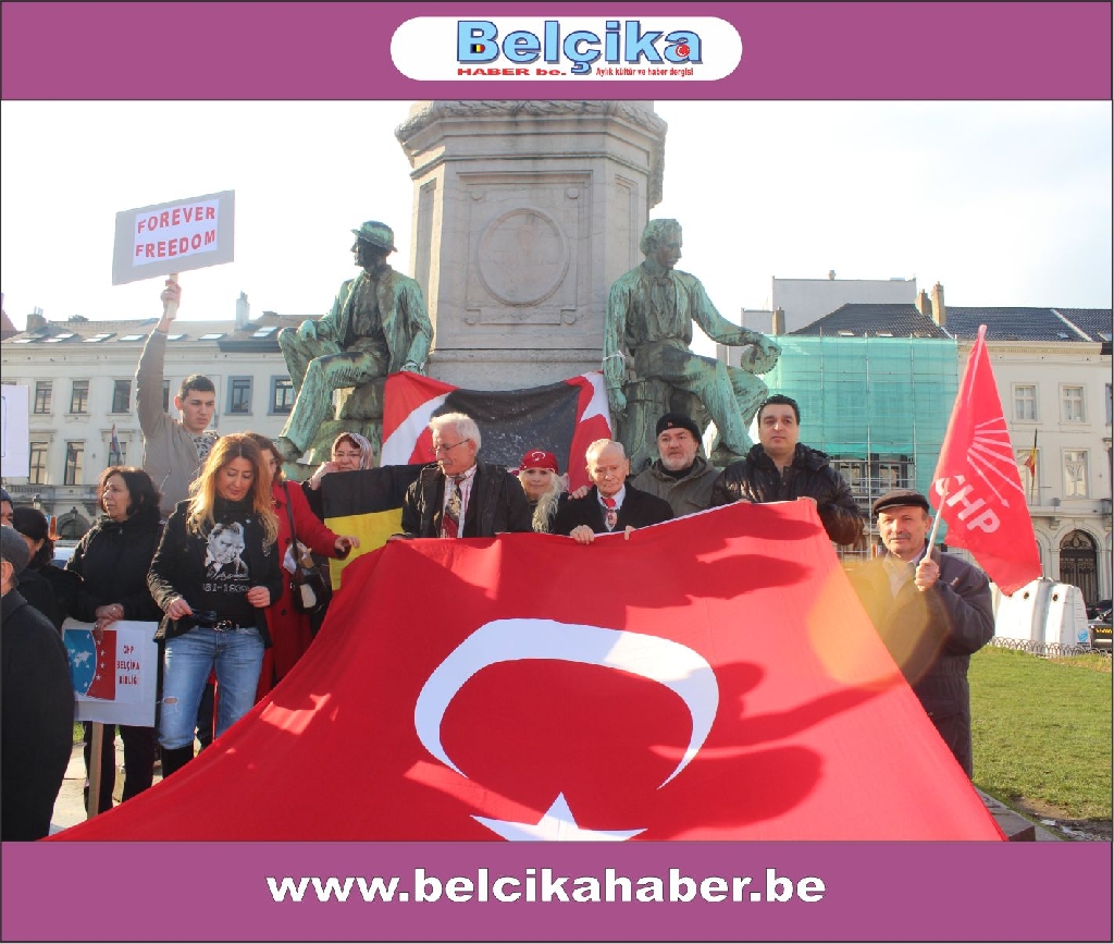 Atatürkün laik eğitimi yok etmeye çalışan dini eğitim sistemlerinin model alınmasına,erkek eğemen bir toplum oluşturulmaya çalışılmasına, bilimden uzak hurafelere dayalı bir sistem oluşturulmasına, çocuk gelinlere DUR DEMEK için buradayız. Ülkemizde umutların tüketildiği,ekonomik ve sosyal nedenlerle intiharların arttığı bir dönem yaşanırken BAŞBAKANIN ,BAKANLARININ VE OĞULLARININ YOLSUZLUKLARINA DUR DEMEK için buradayız… Belçika da yaşayan Türkler olarak Anavatanımızdaki sorunlara kayıtsız kalmadığımız için buradayız » dedi