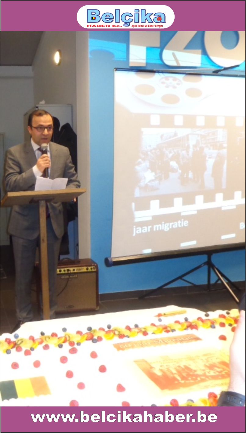 Daha sonra Gent Türk Ocaĝı Başkanı Erdal Böcük: Misafirlere hoş geldiniz diyerek, kendilerine minnet borçlu olduklarını söyledi. FZO-VL başkanı Ceylan Kara: Belcika’nın sunduĝu imkanlar çercevesinde bu ülkede sizlerin sayesinde Müslüman Türk toplumu olarak kendi camilerimizi açtık. Bu camiler sizlerin en büyük eserleridir. Bu deĝerli ve anlamlı hizmetiniz dolayısıyla sizlere bir kez daha teşekkür ederim dedi. Oost-Vlaanderen Bölge milletvekili Veli Yüksel: Salona baktıĝımda çok duygulanıyorum. Dört kusaĝı bir arada görüyorum ve duygulanıyorum. Bu memelekete sari öküz parası biriktirmek için gelen dedelerimizden bu güne 50 yıl geçti. Bugün göçün 50.yılını yad ediyoruz dedi. Gent Belediye Meclis Üyesi Mehmet Sadik Karanfil: Bugün sizlerle bir arada olmaktan mutluluk duyuyorum" dedi.