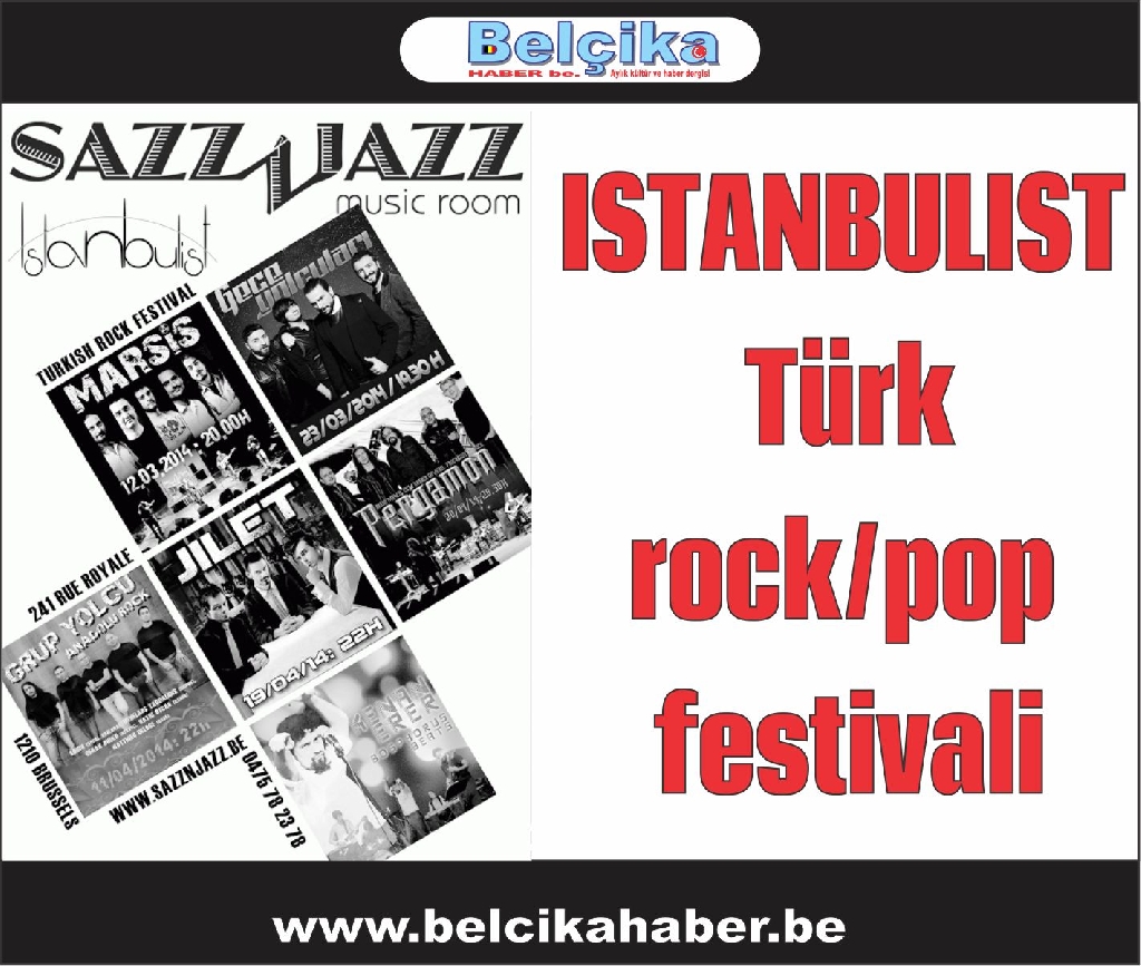 Özellikle Türkçe rock müziğin Belçika’da tanıtımı için Kültür Sanat/Sazz ‘n’ Jazz Mart ve Nisan ayları boyunca Türkiye’den, Belçika’dan ve diğer Avrupa ülkelerinden gelen tanınmış Türk gruplarıyla Türkçe rock/pop festivali düzenleyecektir.