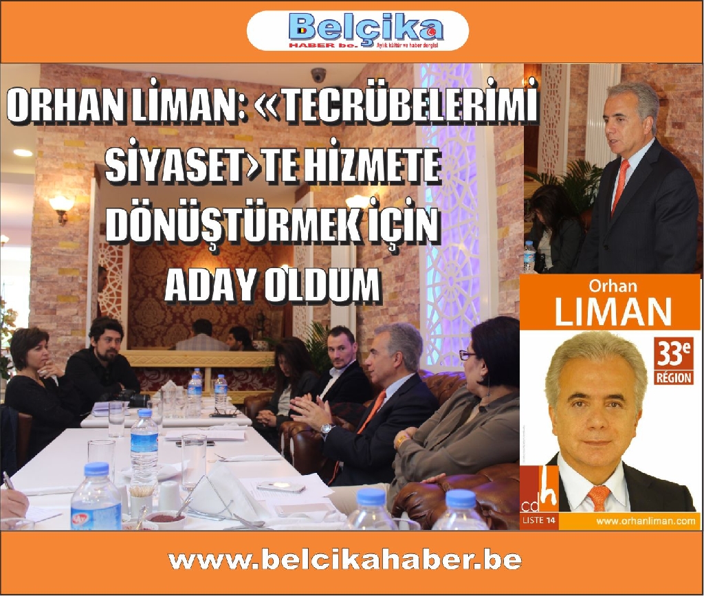 Brüksel’de 30 yıldan beri Bankacılık sektöründe hizmet veren Orhan Liman, 25 Mayıs 2014’te yapılacak olan AB, Federal ve Bölge parlamento seçimlerinde Brüksel parlamentosuna CDH partisinden aday oldu.