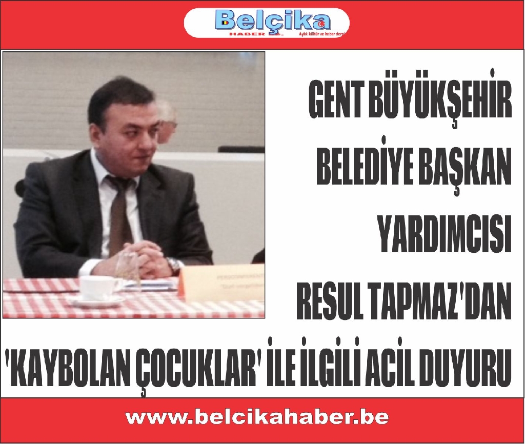GENT BÜYÜKŞEHİR BELEDİYE BAŞKAN YARDIMCISI RESUL TAPMAZ'DAN 'KAYBOLAN ÇOCUKLAR' İLE İLGİLİ ACİL DUYURU