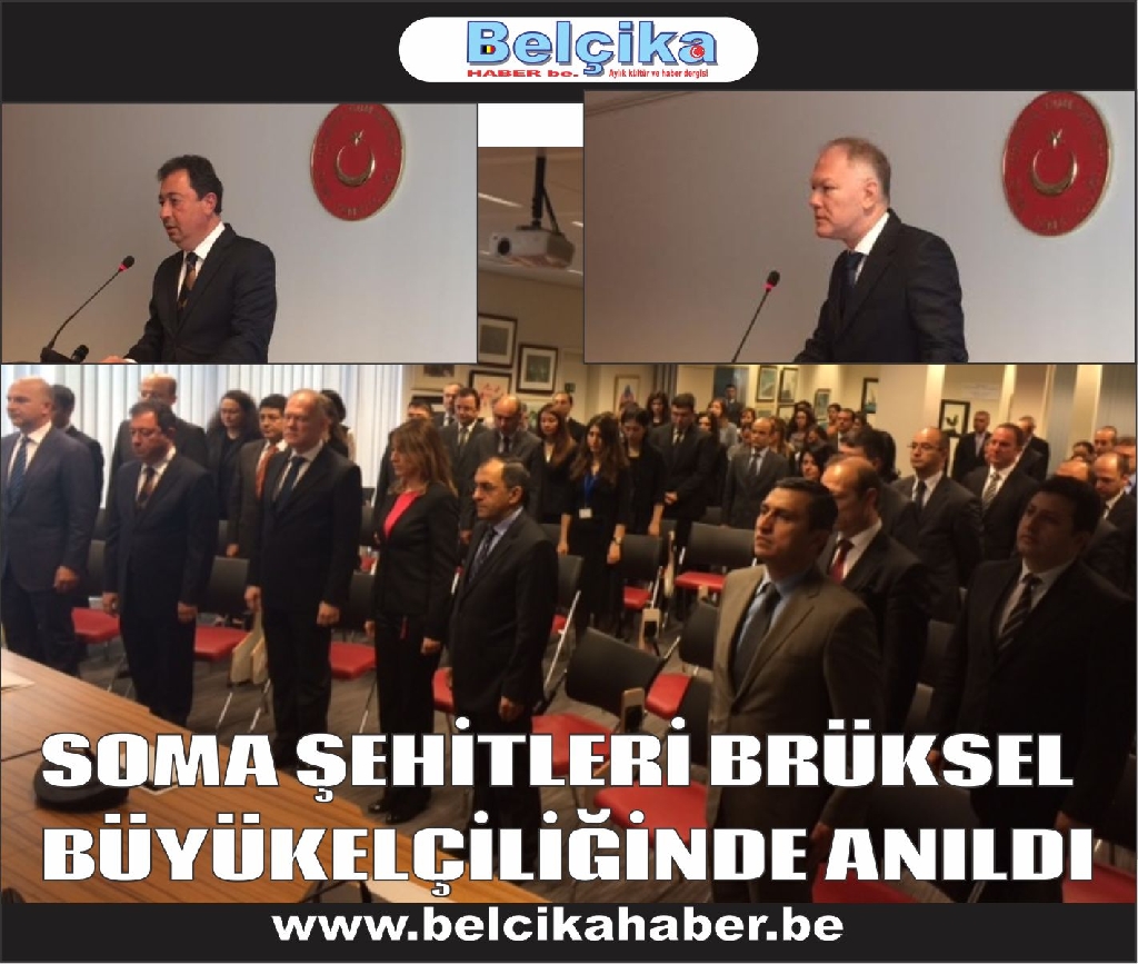 Manisa'nın Soma ilçesinde yaşanan ve milletimizi hüzne boğan maden faciası nedeniyle, 15 Mayıs günü saat 09:15'te, Brüksel Büyükelçiliğimiz ve Avrupa Birliği nezdinde Daimi Temsilciliğimiz personelinin katılımıyla bir anma töreni düzenlenmiştir.
