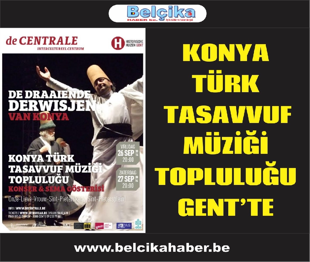 Gent Kültür Merkezi De Centrale 26 eylül Cuma ve 27 eylül Cumartesi akṣamlarɪ Sint-Pieters kilisesinde “Konya Türk Tasavvuf Müziği Topluluğu“ nun müzisyen ve semazenlerinin katılacağı konser ve sema gösterisi düzenliyor.