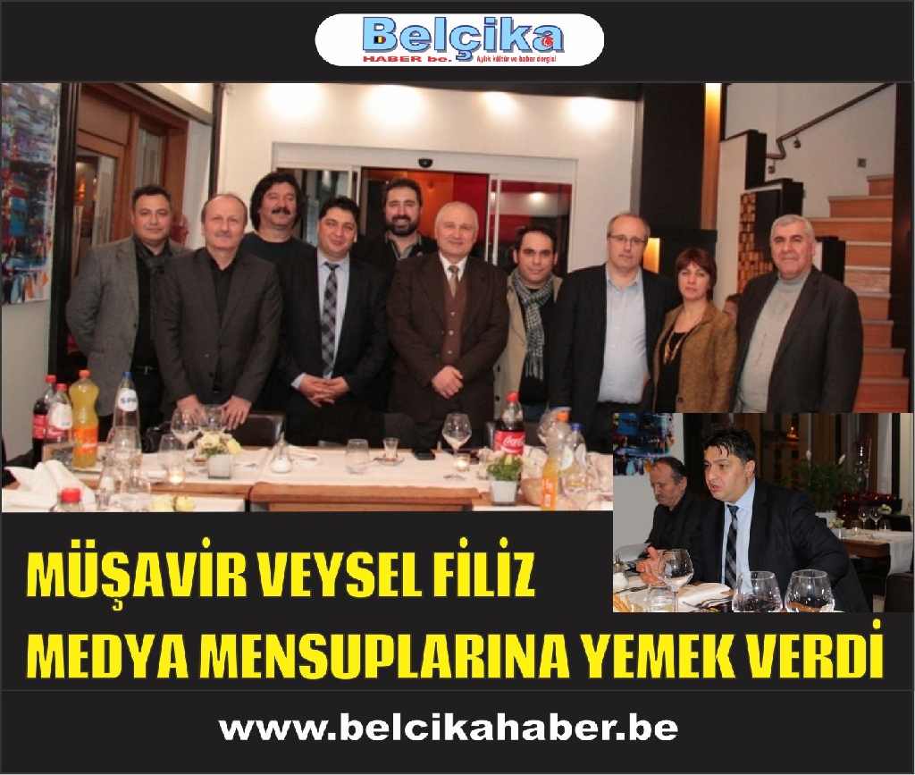 '10 Ocak Çalışan Gazeteciler Günü' nedeniyle T.C. Basın Müşaviri Veysel Filiz,  Belçika'da hizmet veren medya mensuplarına Brüksel 'Fantaisie Restaurant'ta bir yemek verdi. Yemekde Gazetecilerin sorunları ve Avrupa'da gelişen son olaylar değerlendirildi.
