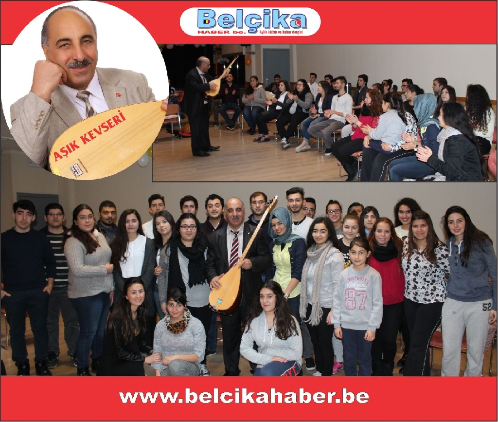 Aşıklık geleneğimizin Türkiye'deki tanınmış simalarından olan AŞIK KEVSERİ Avrupa turnesinin Belçika ayağında, Çağdaş Dernekler Federasyonu AKM Salonunda Orhan Ziya Demir'in hocalığında saz dersi alan genç saz kursiyerleriyle bir araya geldi.