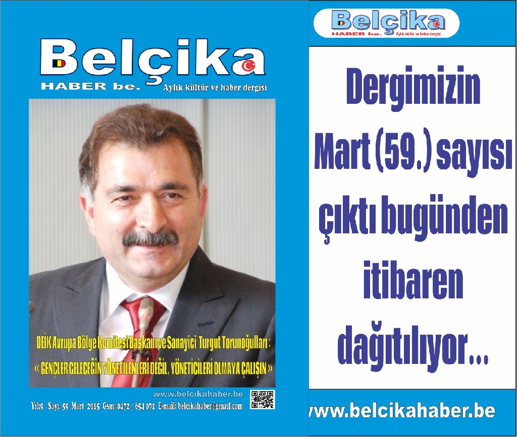 Dergimizin Mart (59.) sayısı çıktı bugünden itibaren dağıtılıyor... Sizlerin destekleriyle alanımızdaki birinciliği sürdürmekteyiz. Sitemiz ve dergimiz ile Belçika Türk Toplumunun ortak Platformu olma yönündeki başarılı çalışmalarımız sürmekte. Yakın ilgi ve alakanızdan dolayı çok teşekkür ediyoruz.