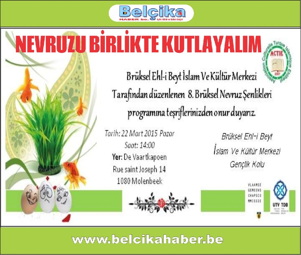 Brüksel Ehl-i Beyt İslam Ve Kültür Merkezi Tarafından düzenlenen 8. Brüksel Nevruz Şenlikleri programı bugün saat 14:00'de De Vaartkapoen Rue saint-Joseph 14, 1080 Molenbeek adresinde yapılacaktır.