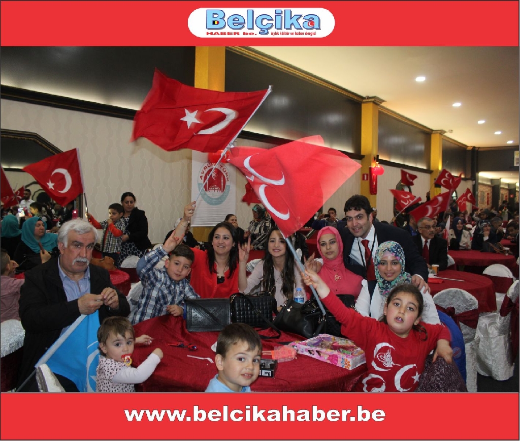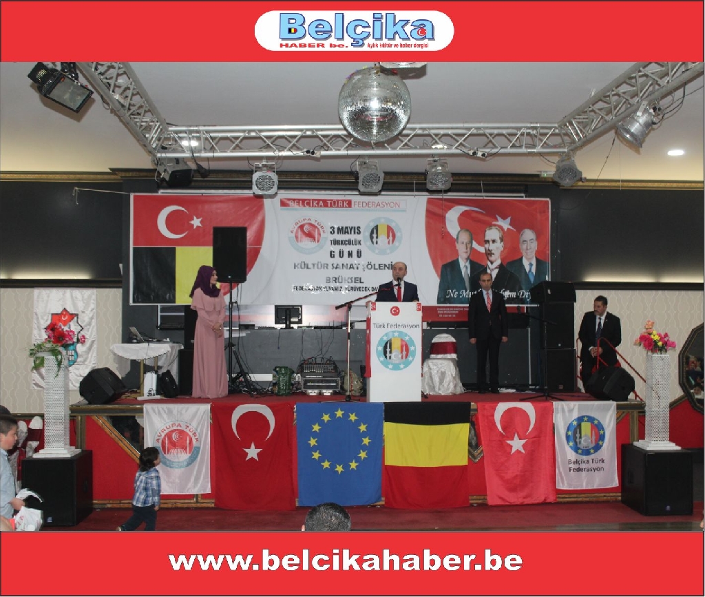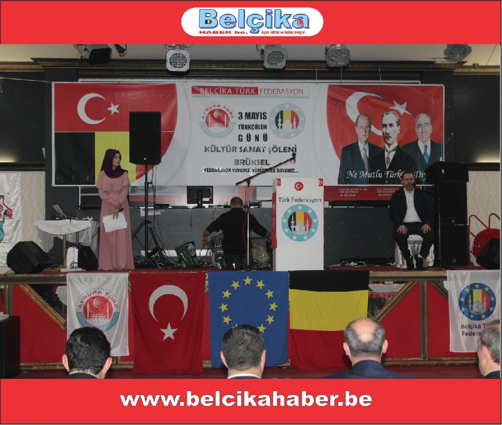 Belçika Türk Federasyonu bünyesinde hizmet veren, Brüksel Ülkü Ocağı’nın düzenlediği, ‘3 Mayıs Türkcülük Günü’nde salonu dolduran Ülkücüler ellerinde Türk bayrağı, 3 Hilal ve Bozkurt bayraklarını sallayarak Sanatçılara eşlik ederek büyük coşku yaşadılar.