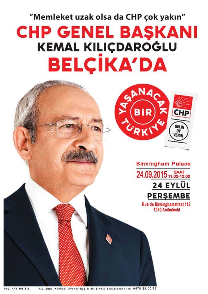 CHP Belçika Birliği Başkanı Zuhal Kayhan yaptığı açıklamada : « CHP Genel Başkanımız Sayın Kemal Kılıçdaroğlu Avrupa’lı Türklerle buluşmak ve bayramlaşmak üzere Fransa’dan sonra Belçika’ya gelecek.