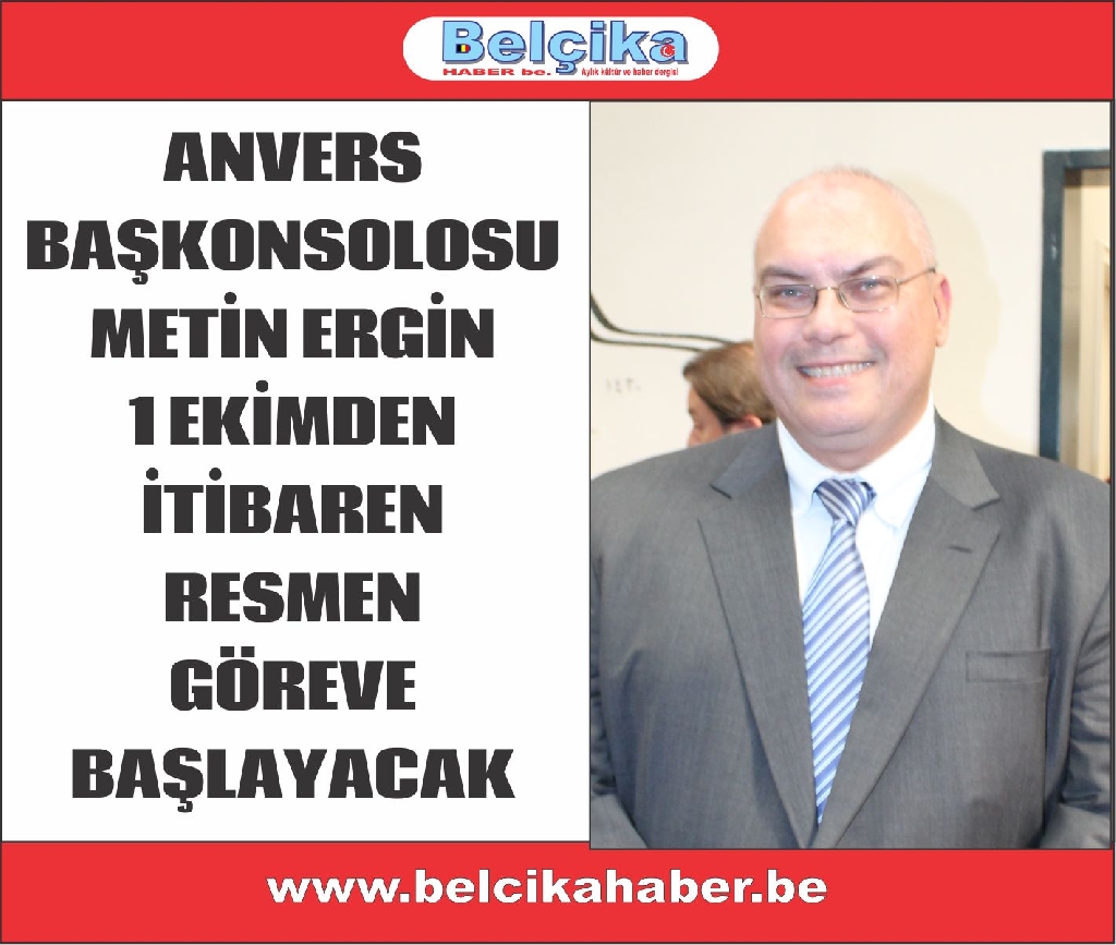 Türkiye Cumhuriyeti – Anvers Belçika yeni Başkonsolosu olarak atanan Metin Ergin, 1 Ekim 2015 günü resmen görevine başlayacaktır.