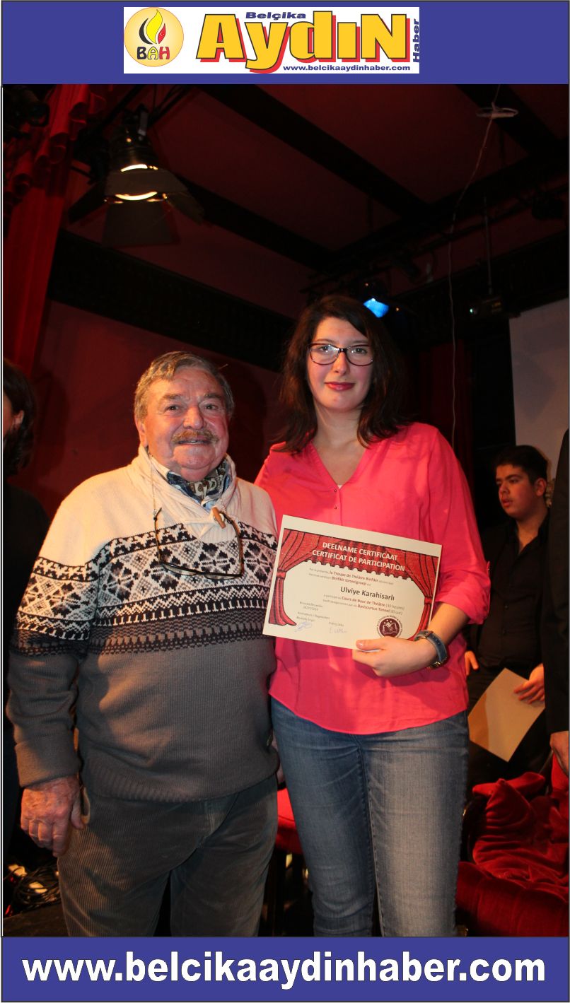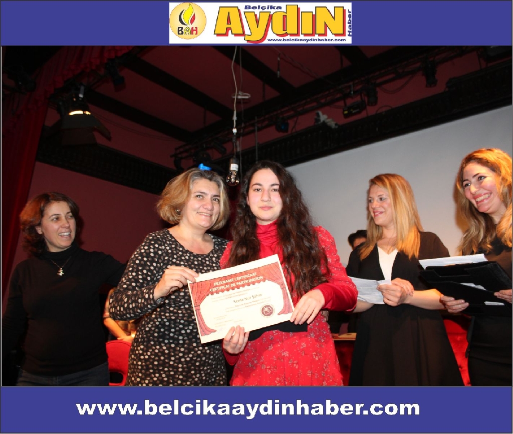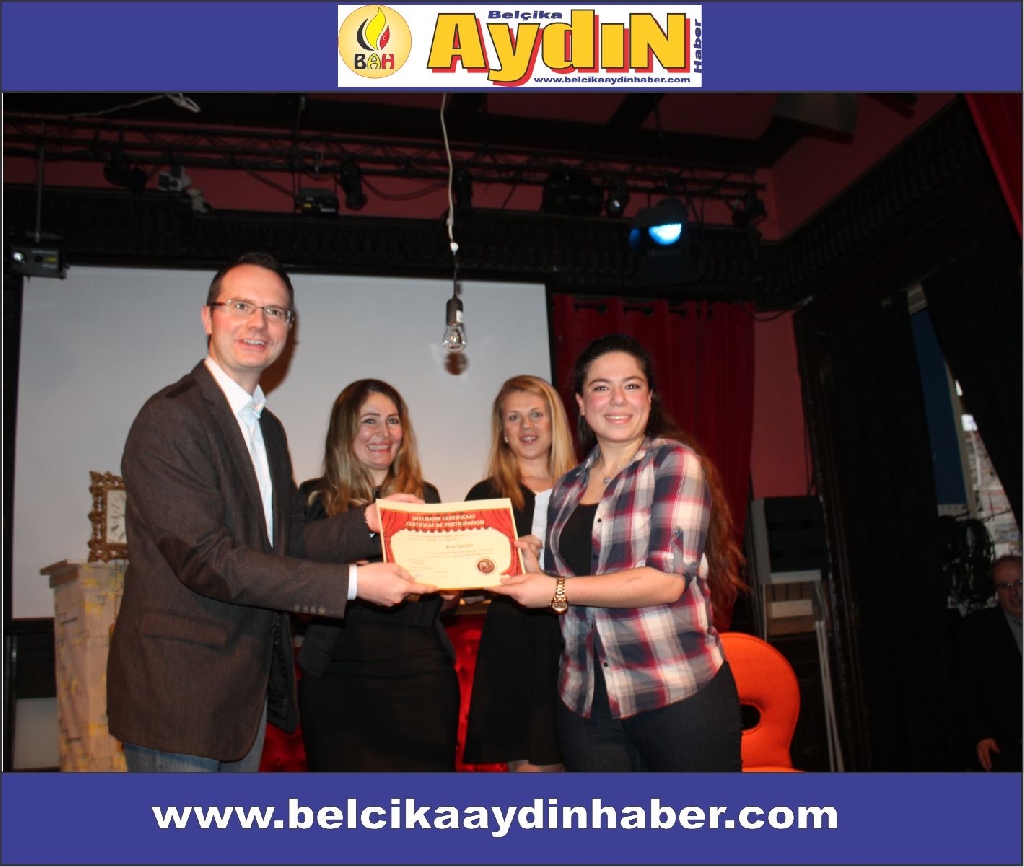 T.C. Brüksel Başkonsolos’u Ali Barış Ulusoy, Schaerbeek Belediye Başkan Yardımcısı Sait Köse, Evere Belediyesi Başkan Yardımcısı Ali İnce, Evere Belediye Meclis Üyesi Belma Tek, Şair Nihat Kemal Ateş, Karikatürist Sayın İsmail Doğan, Sazznjazz Yöneticisi Ali Bağseven, Ressam Sayın Nerkiz Şahin, Mizah Yazarı ve Tiyatro Yönetmeni Erdinç Utku ve Emektar tiyatrocu Mustafa Zıngır’ın ellerinden sertifikalarını almanın heyecanını yaşadılar.