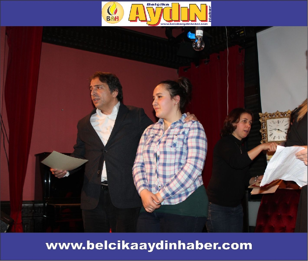 Bu gün burada ‘Evin içi’ adlı oyunları ve Belçika Türk oplumunun yaşadığı olayları skeçleriyle hicveden oyunlarınızı sahneleyen tüm oyuncularımıza ve bizlerden her zaman desteğini eksik etmeyen siz davetlilerimize çok teşekkür ediyoruz » dedi.