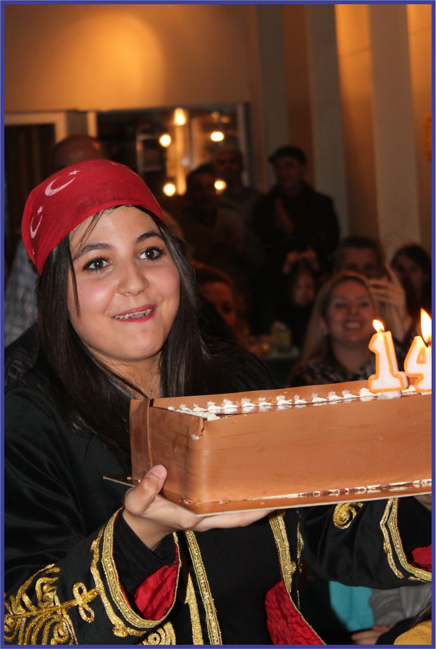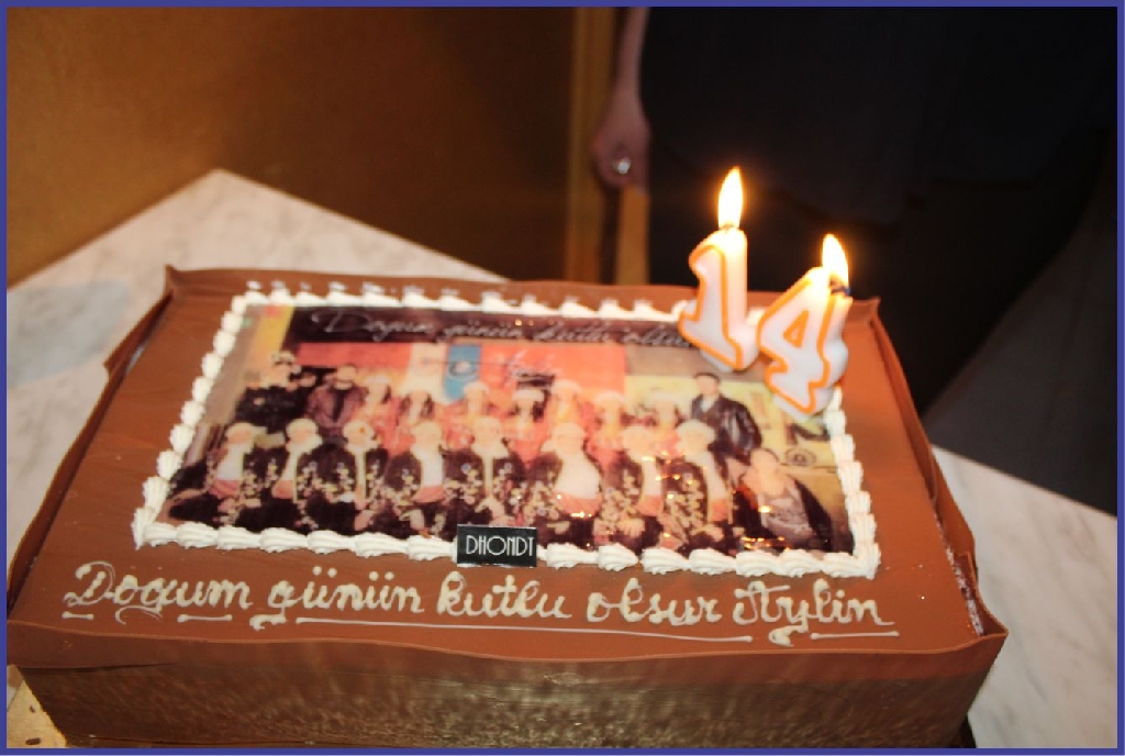 Gece’de bir folklörcü’nün yaşgünü kutlamasıda yer aldı. Dillere Destan Folklör Ekibinin resminin yer aldığı yaş pastadaki mumlar üflenerek, kutlamaya renk katıldı.