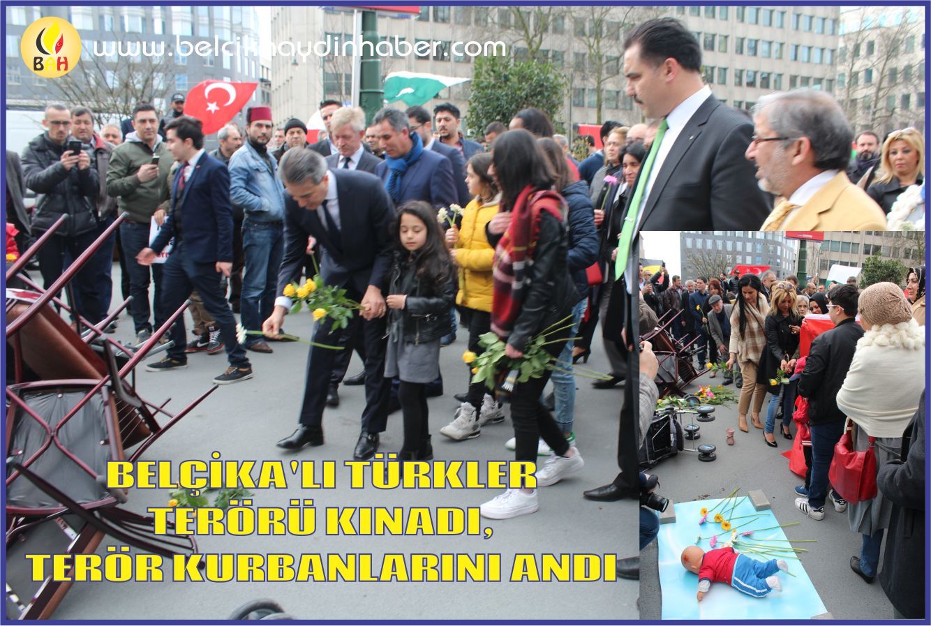 Belçikalı, terör kurbanlarının yanı sıra diğer terör kurbanı olan Türk, Tunus, Fransız, Irak, Suriye, Fildişi Sahili ve diğer ülke vatandaşlarını da anıyoruz. Terörizm karşısında dayanışma içinde olmalım. Ayakta kalalım !