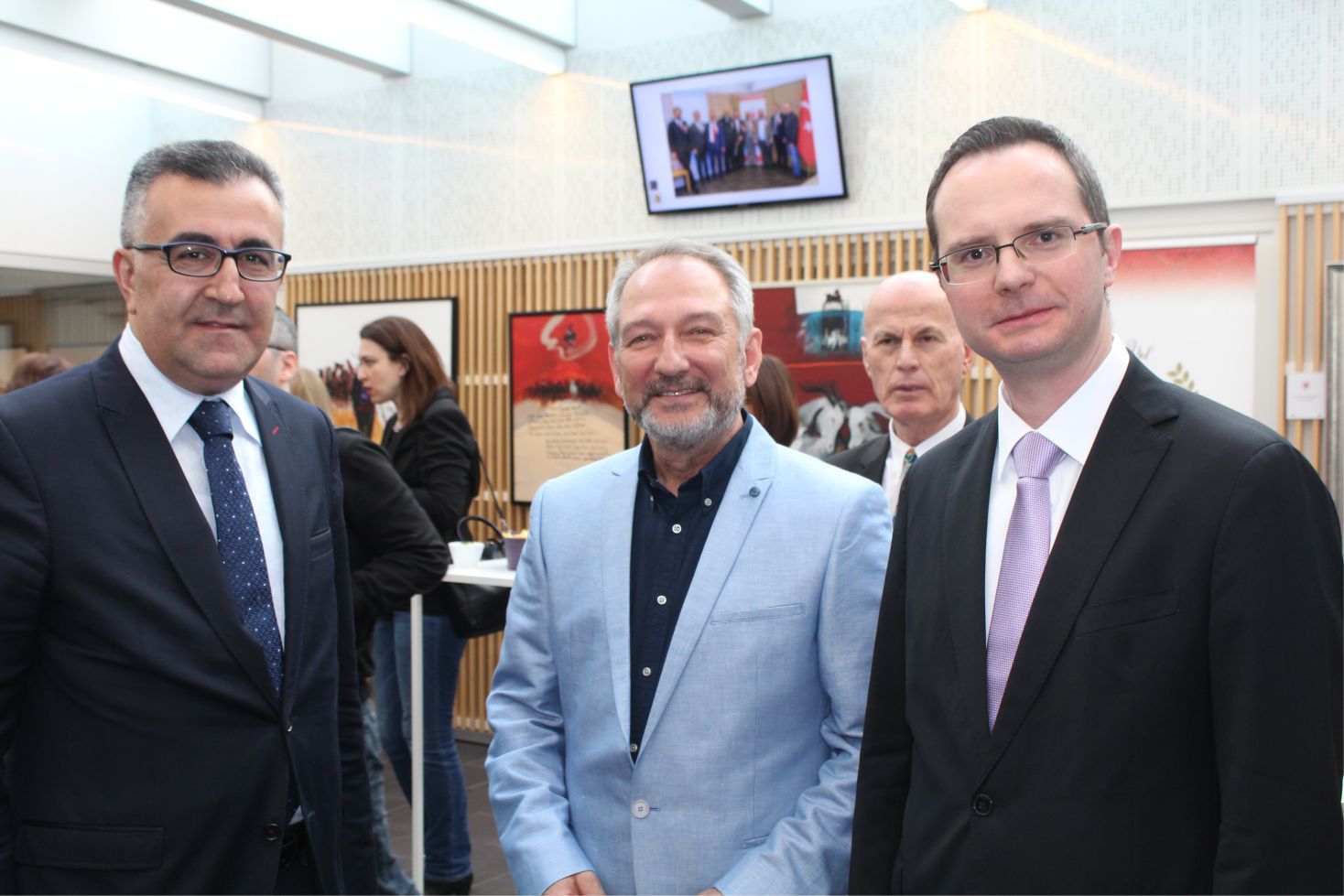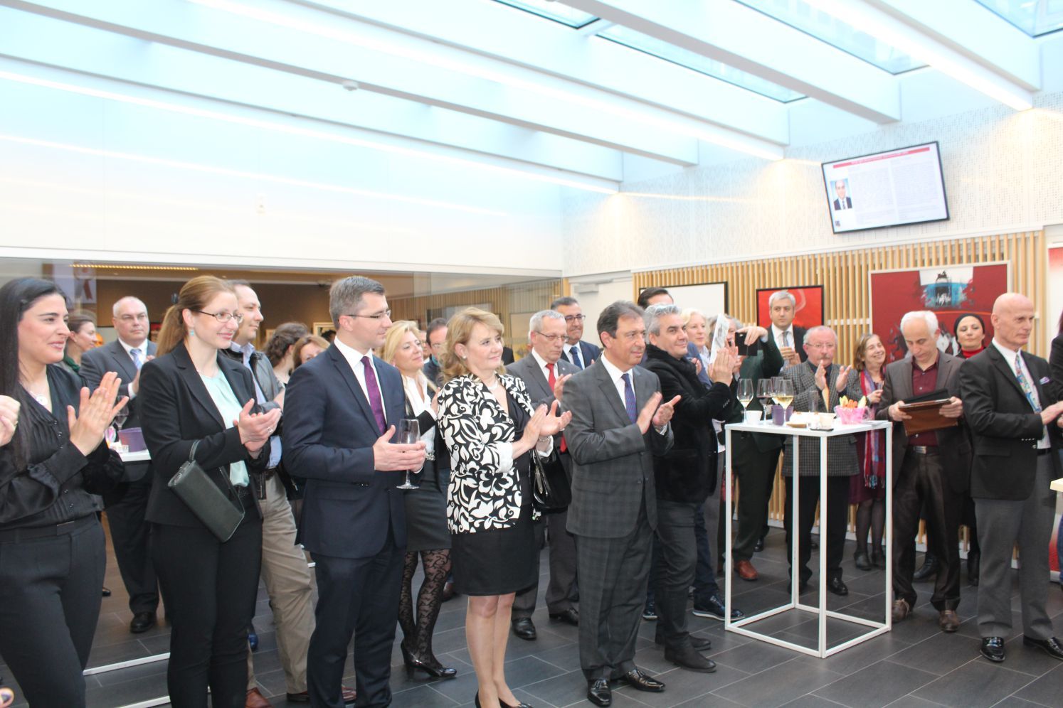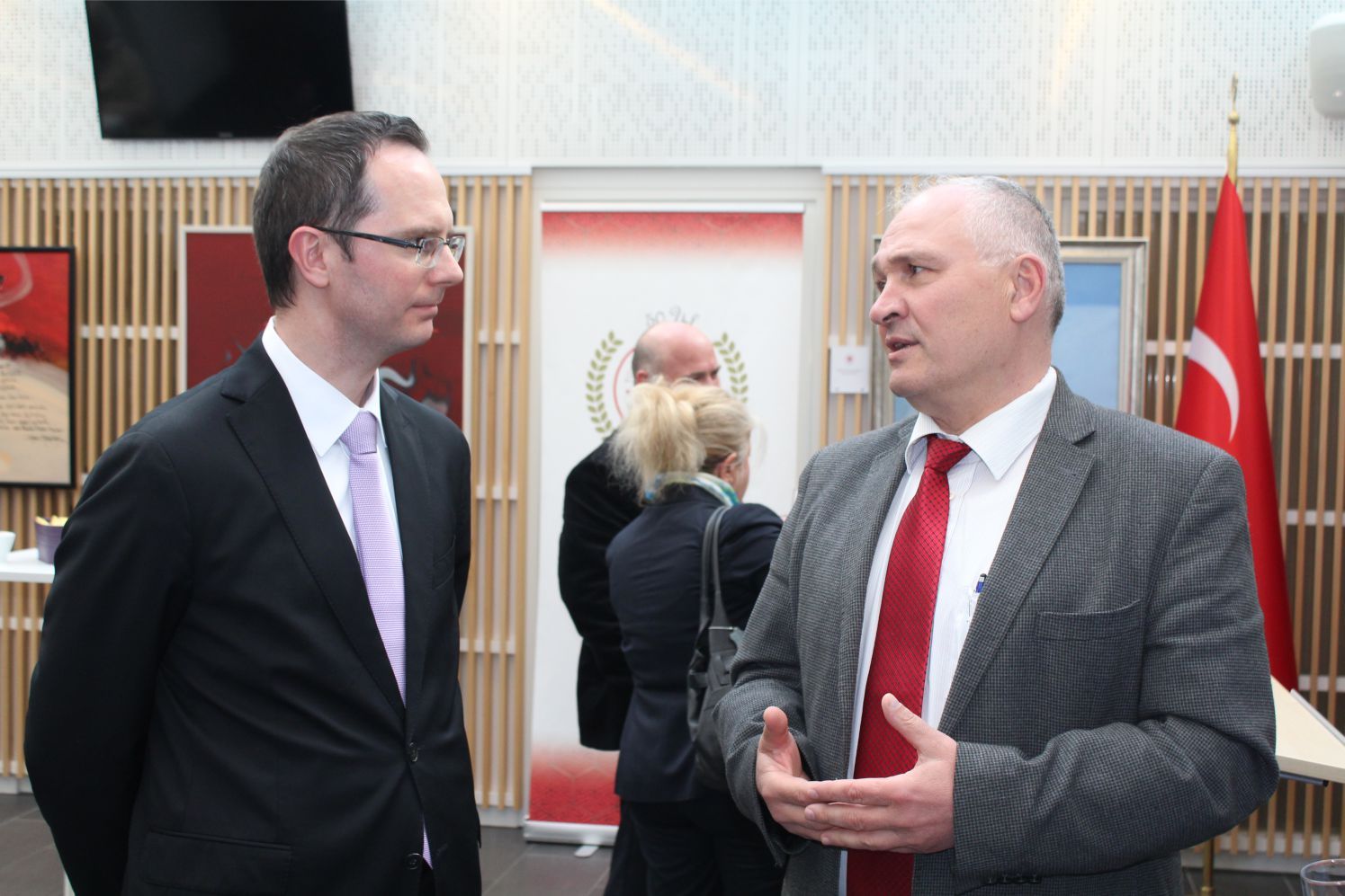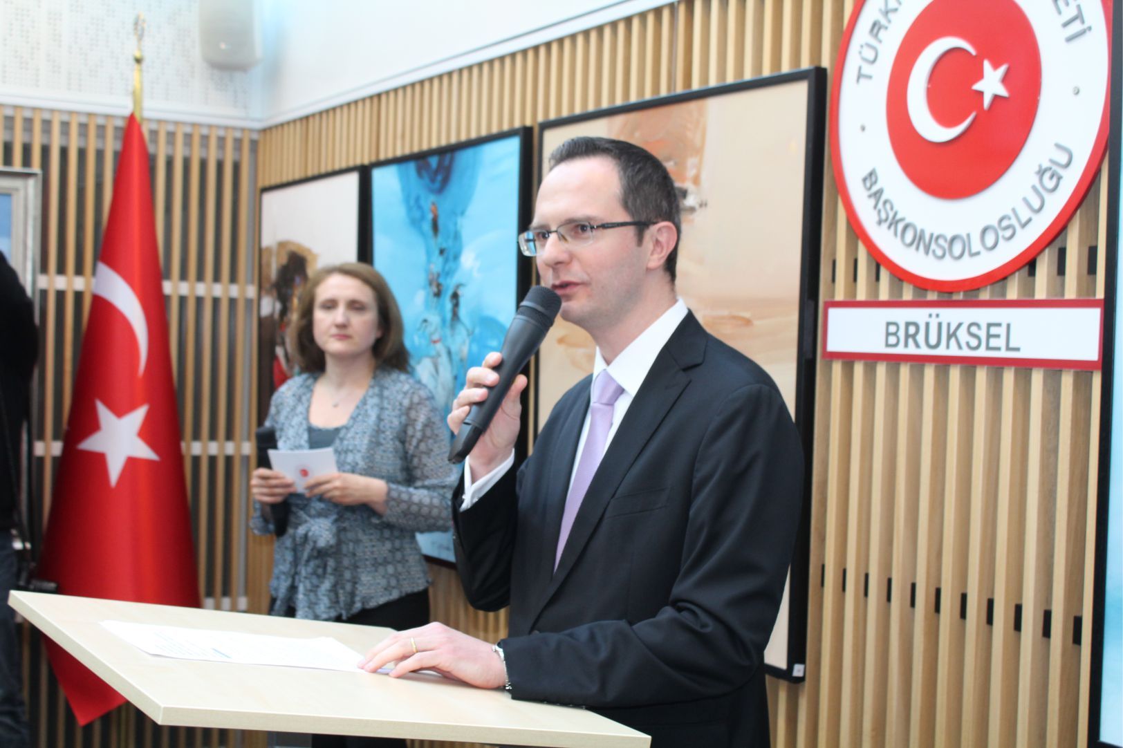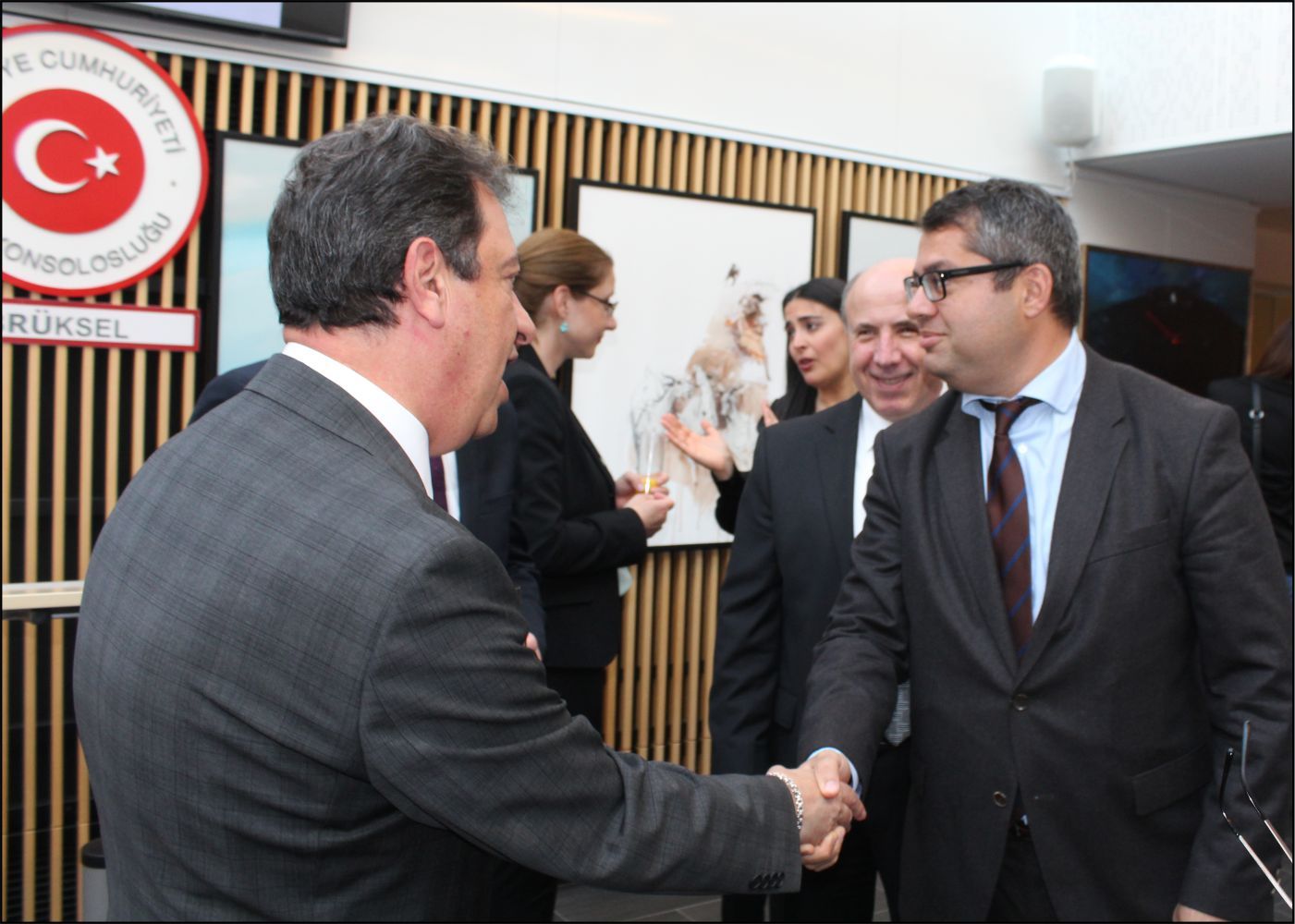 Ateşe Yardımcısı Ümüs İkiz ve Sekreter Fügür Gümüş’ün sunumlarıyla resepsiyonda ilk konuşmayı Brüksel Başkonsolosu Ali Barış Ulusoy yaptı.