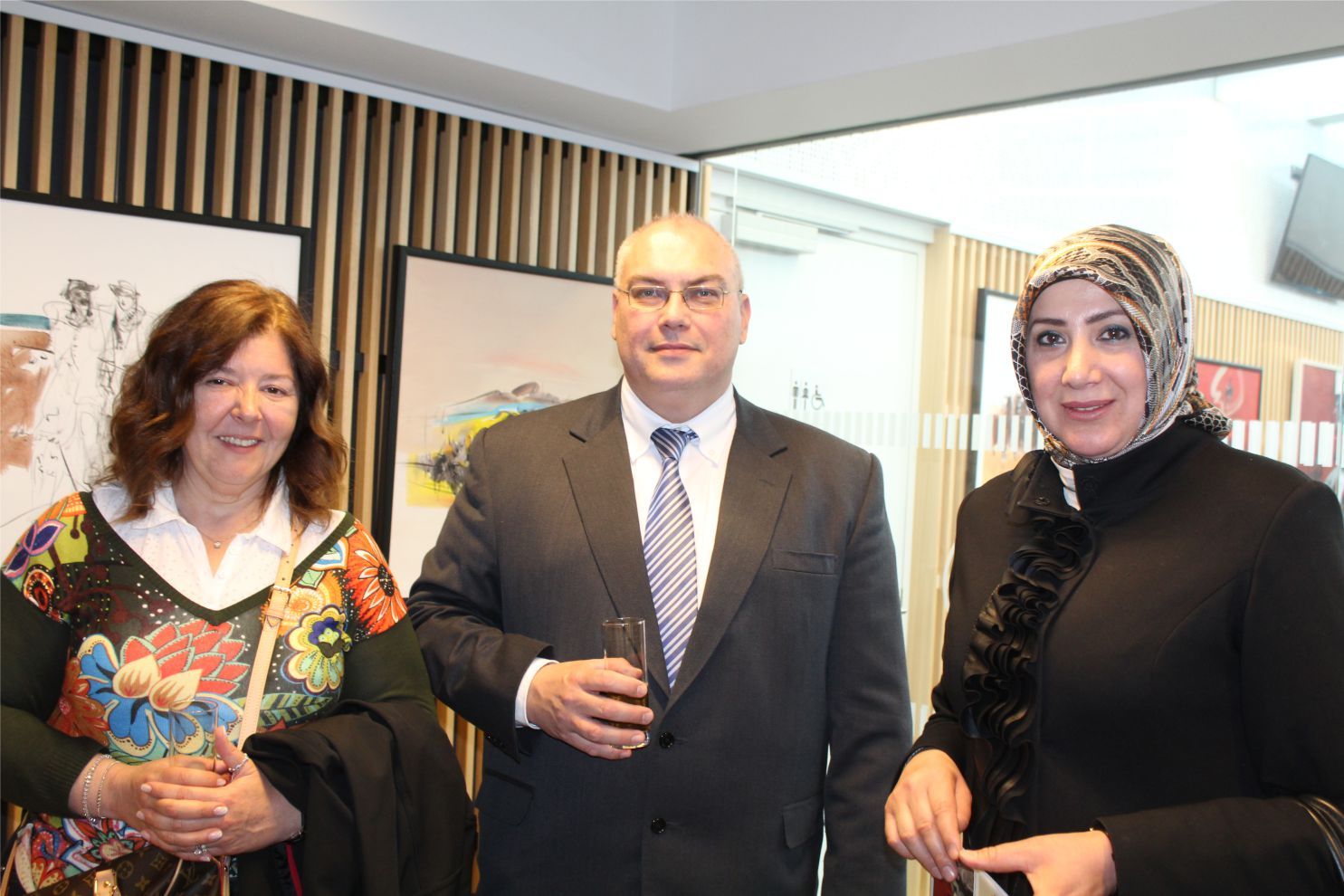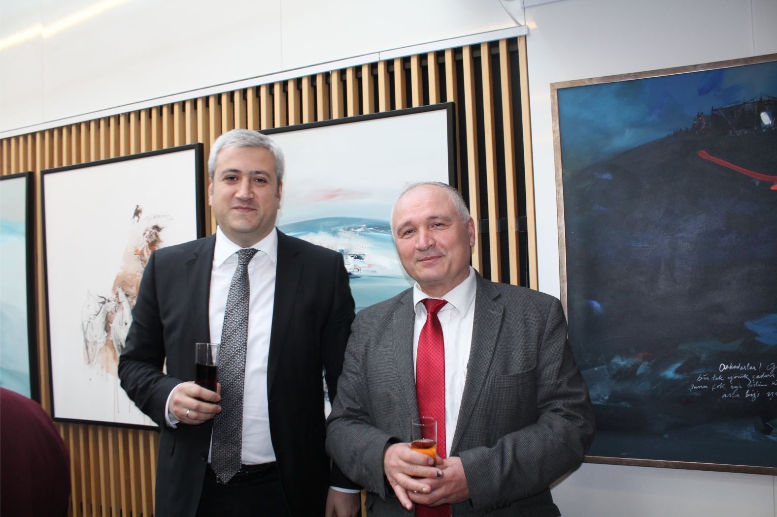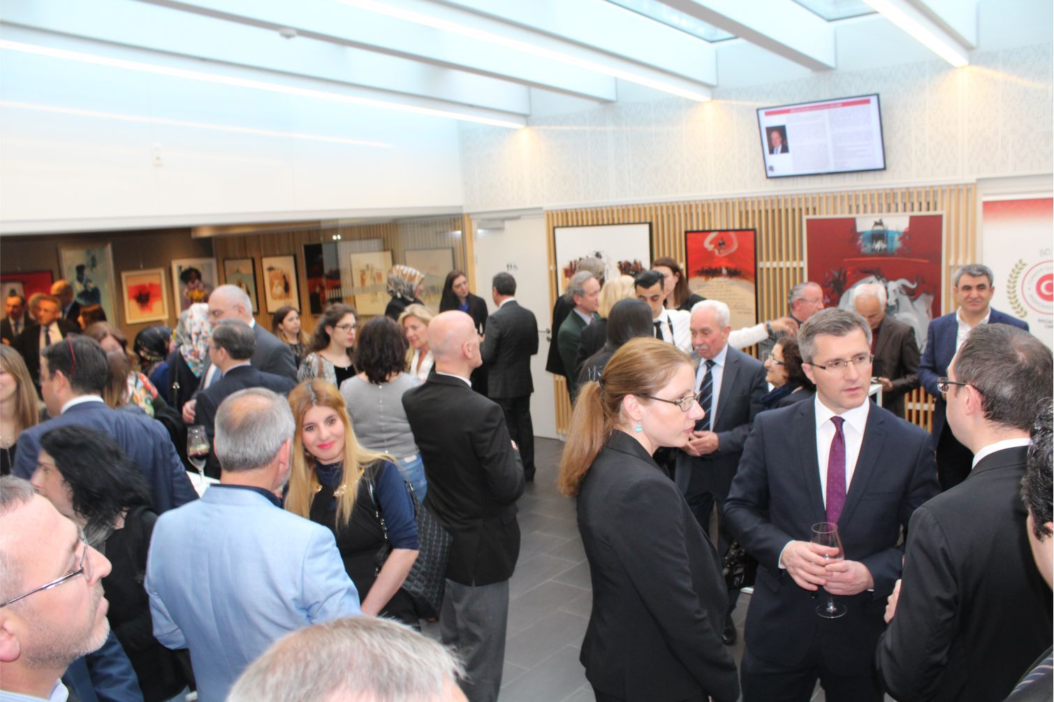 Resimleriyle geceye renk katan Ressam Akdoğan Topaçlıoğlu’nunda hazır bulunduğu Resepsiyonuna Brüksel Büyükelçi Hakan Olcay, Sefire Mehveş Olcay, Müsteşar Ece Yaprak, Anvers Bakonsolosu Metin Ergin, Konsolos Ahmet Yavuz Aybaş, Azerbaycan Nato Daimi Temsilcisi Hazar İbrahim, Azerbaycan Cumhuriyeti Büyükelçilik Birinci Katibi Zaur Ahmadov, Saint Josse Belediye Başkan Yardımcısı Beatric Meulemans, Schaerbeek Belediye Başkan Yardımcısı Sadık Köksal, Anderlecht Meclis Üyesi Abdurrahman Kaya, BTMB Başkanı Hüseyin Dönmez, STK Temsilcileri, İşadamları, Sanatçılar, Türkçe ve Türk Kültürü Öğretmenleri ve kalabalık davetli katıldı.
