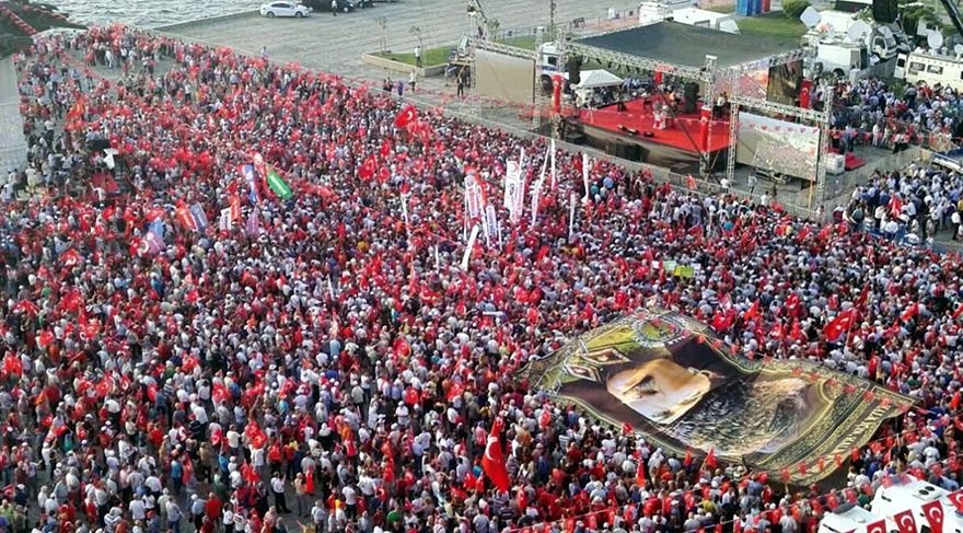 CHP Genel Başkanı Kemal Kılıçdaroğlu, İzmir'deki Cumhuriyet ve Demokrasi mitinginde darbe girişiminden çıkarılacak derslere dikkat çekerek, "Devlette yükselmenin yolu bir cemaate, bir partiye üye olmaktan akraba, oğlu, kızı olmaktan geçmemelidir. Bilgiden, birikimden tecrübeden geçmelidir. O işi en iyi yapanlar devlet yönetiminde yer almalı. Başta iktidar partisi olmak üzere herkesin bu gerçeği bir kez daha düşünmesi ve yol haritasını ona göre belirlemesi lazım" dedi. CHP Genel Başkanı Kılıçdaroğlu, FETÖ'nün devlete sızmadığını adım adım planlı bir şekilde devlete yerleştirildiğini öne sürdü.