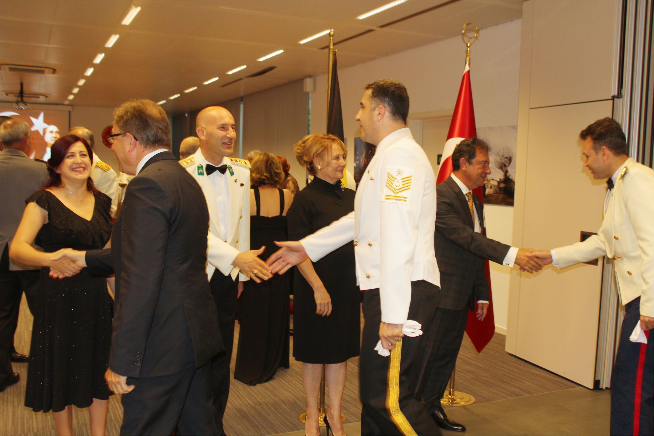 T.C. Brüksel Büyükelçisi Hakan Olcay’ın himayesinde gerçekleştirilen resepsiyona Nato Genel Sekreter Yardımcısı Tacan İldem, Brüksel Başkonsolosu Dilşad Kırbaşlı Karaoğlu, Brüksel Başkonsolosluğu Konsolosu Yavuz Aybaş, KKTC Temsilci Büyükelçi Damla Güçlü, TMR Başkanı Koramiral Serdar DÜLGER, TMR Bşk. Emir Subayı P. Bnb. İbrahim DOĞRUSÖZ, NMR Başkanı Tuğgeneral Sezai ÖZTÜRK,yanında kordiplomatik, askeri erkan, çeşitli sivil toplum kuruluşları, Belçika’daki Türk temsilcilikleri mensupları ve Belçika resmi makamlarından yoğun katılım oldu.