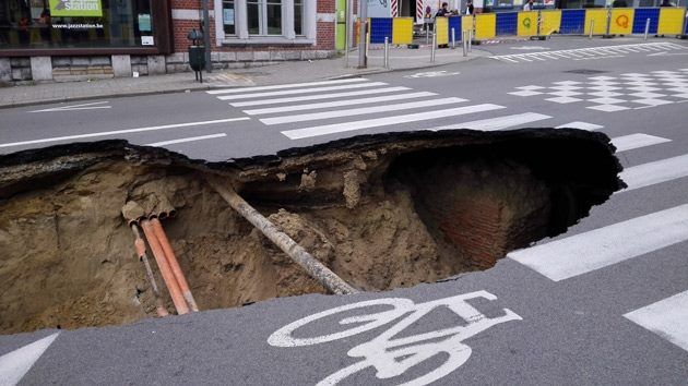Dün sabah Chaussée de Louvain'de yolda büyük bir göçük meydana geldi. Chaussée de Louvain, n: 205 civarında toprak altında bir su patlaması sonucu biriken su önce burada, daha sonra da biraz ileride yolun ortasında büyük bir göçüğe yol açarak yakındaki tren yolunna aktı. Sabah önce sular kesildi.