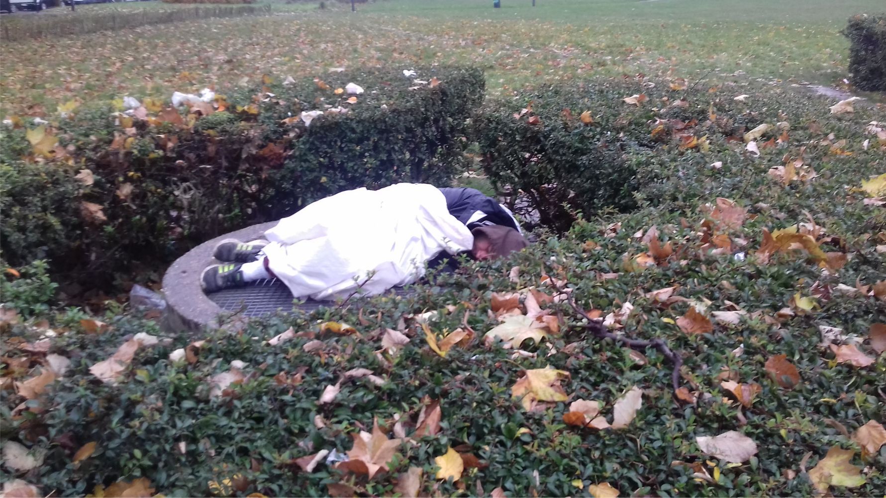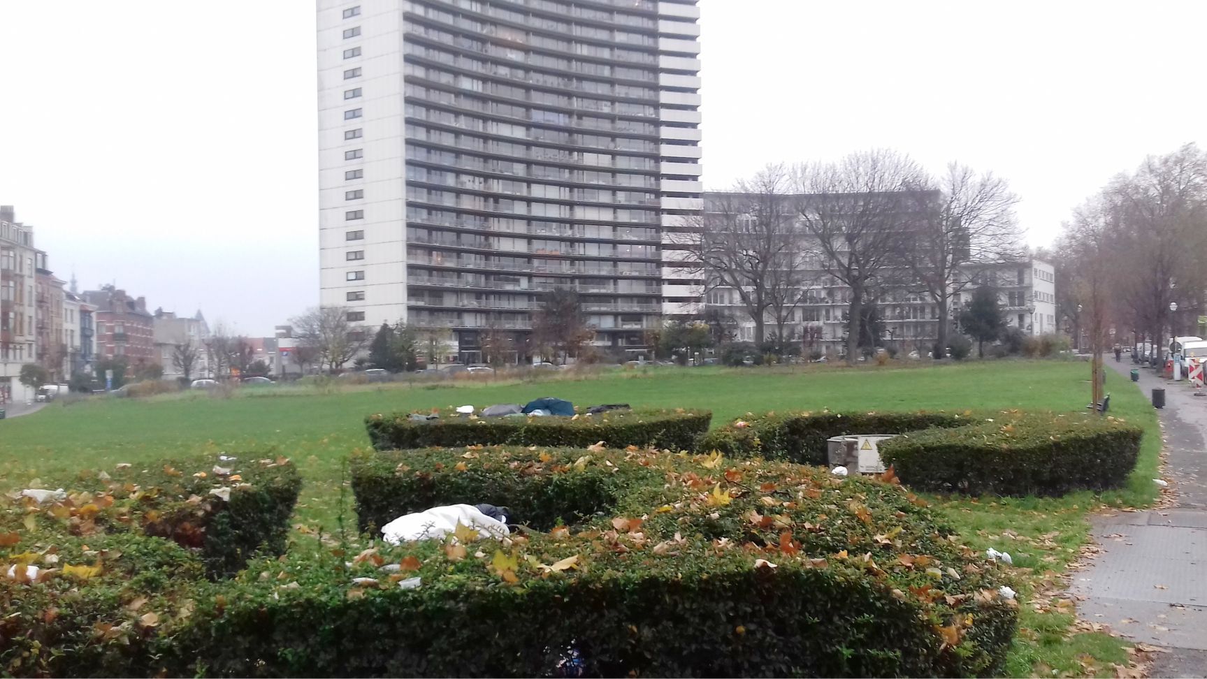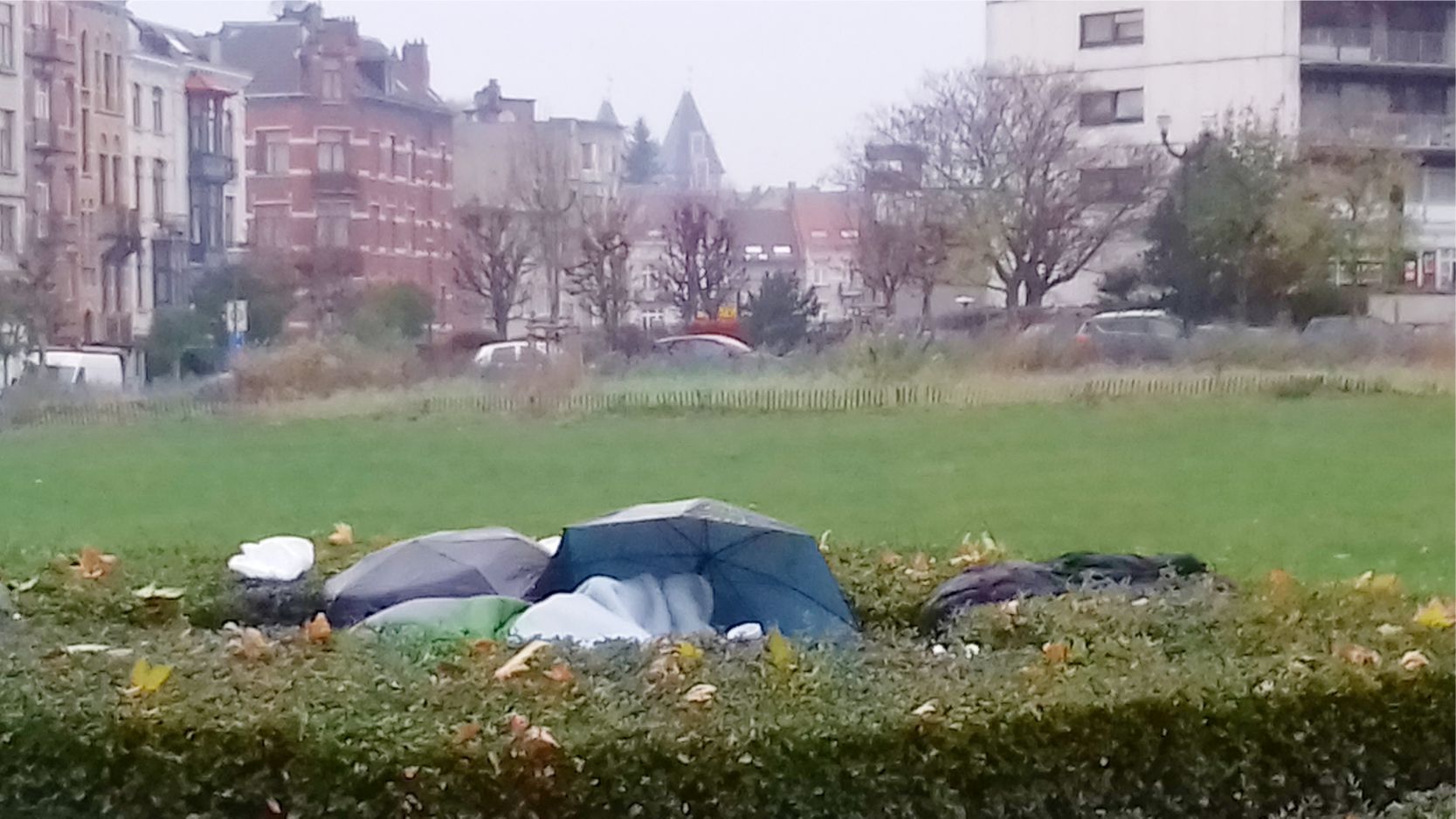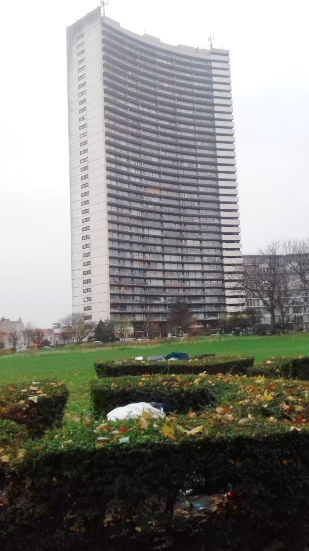 Bu sabah Josafhat parkına doğru yürümek istediğimde gördüğüm manzara beni şok etti. Büyük bir binanın önündeki park alanında 3 yuvarlak çitlerle çevrili alan var. Birisin de Elektrik trafosu diğer ikisinde de naylonlar ve şemsiyelerle kaplı açık alanda uyumaya çalışan iki kişi bir alanda, bir kişi ise tek olarak uyuyordu.