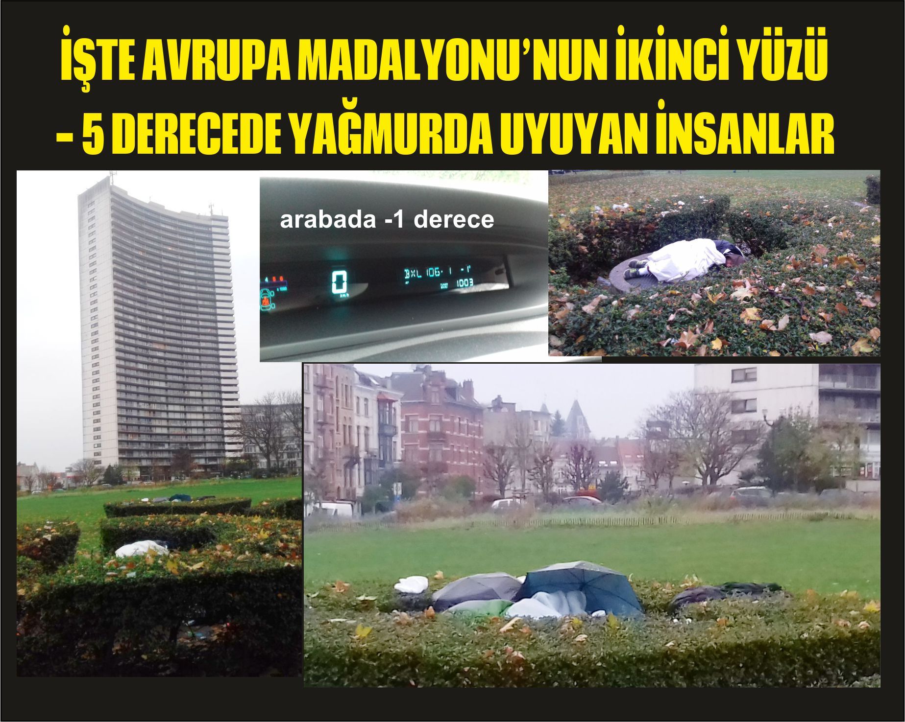 Bu resimler Avrupa’nın diğer yüzünü gösteriyordu. Bu tabi ki, benim gördüğüm örnekler. Kim bilir bu dramatik görüntüler Brüksel’in nice köşelerinde yaşanmakta. Toplum olarak görüp geçtiğimiz hiç bir sosyal refleks göstermediğimiz bu görüntüler Avrupa’ya hiç yakışmıyor. Avrupa’nın başkentinde ki bu görüntüler Avrupa vizyonunun da en önemli görsellerindendir. Avrupa’ya yakışmayan bu görüntülerin ortadan kalkması için sorumlu yöneticileri göreve davet ediyoruz.