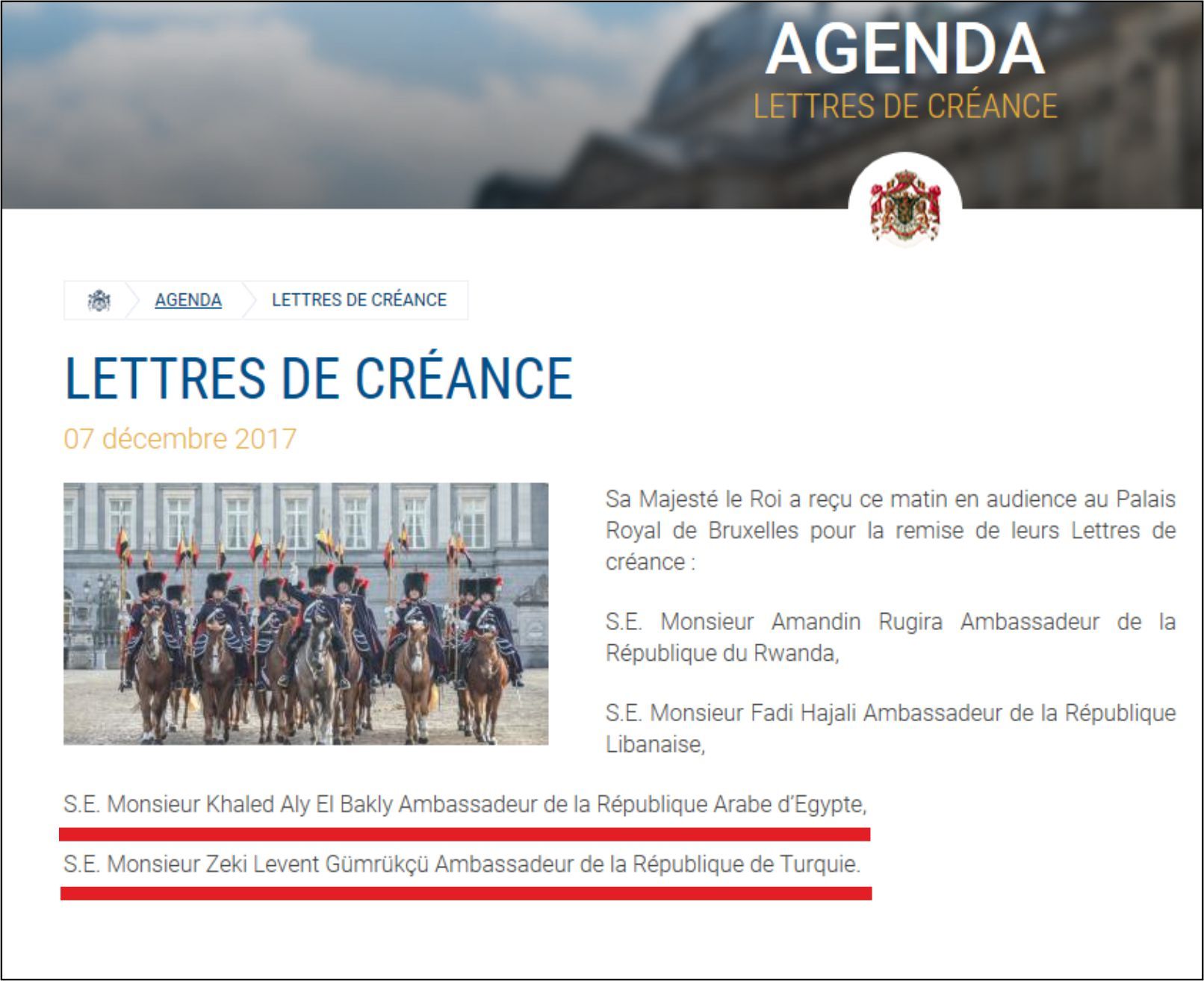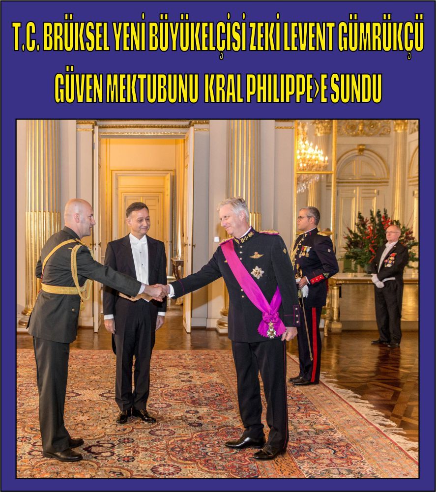 Türkiye Cumhuriyeti’nin Belçika Krallığı nezdindeki yeni Büyükelçisi Zeki Levent Gümrükçü, 1 Aralık 2017 tarihi itibariyle görevine resmen başladı. Büyükelçi Zeki Levent Gümrükçü dün (7 Aralık) Kral Philippe’e güven mektubunu sundu.
