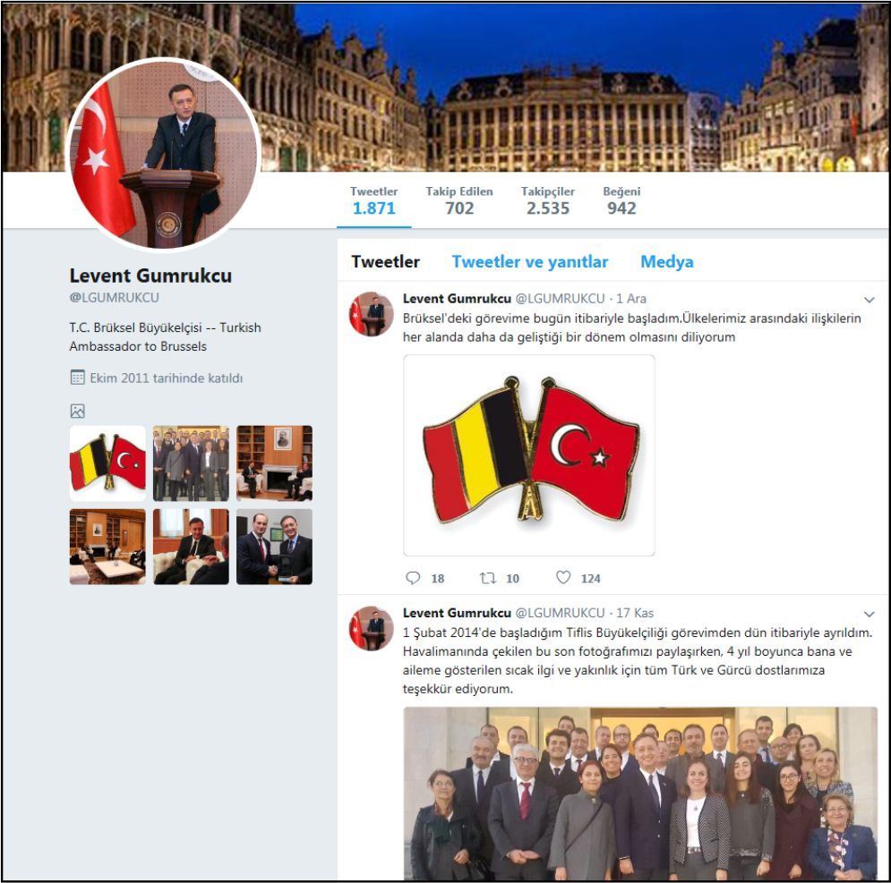 Büyükelçi Gümrükçü Twitter hesabından kısaca şu notu paylaştı. "Brüksel'deki görevime bugün (1 Aralık 2017) itibariyle başladım.Ülkelerimiz arasındaki ilişkilerin her alanda daha da geliştiği bir dönem olmasını diliyorum