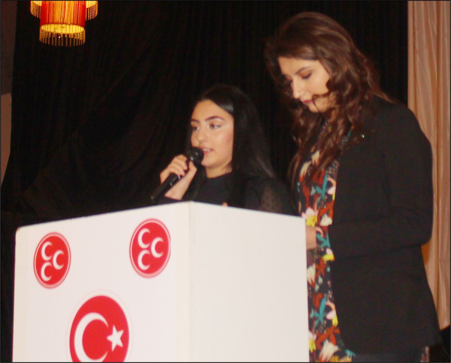 Program davetli ve protokol üyelerinin yerlerini almasının ardından Belçika ve Türk marşlarının okunması, şehitlere saygı duruşu ile başladı. Atatürk, Türkeş ve MHP genel başkanı Devlet Bahçeli’nin posterleri, Türk ve parti bayraklarıyla donanan salonda ülkücüler sık sık ‘Başbuğ Türkeş, Lider Bahçeli’, ‘Ülkücü Hareket Engellenemez’ şeklinde sloganlar atarak, ellerindeki bayraklarla sanatçılara eşlik ettiler.