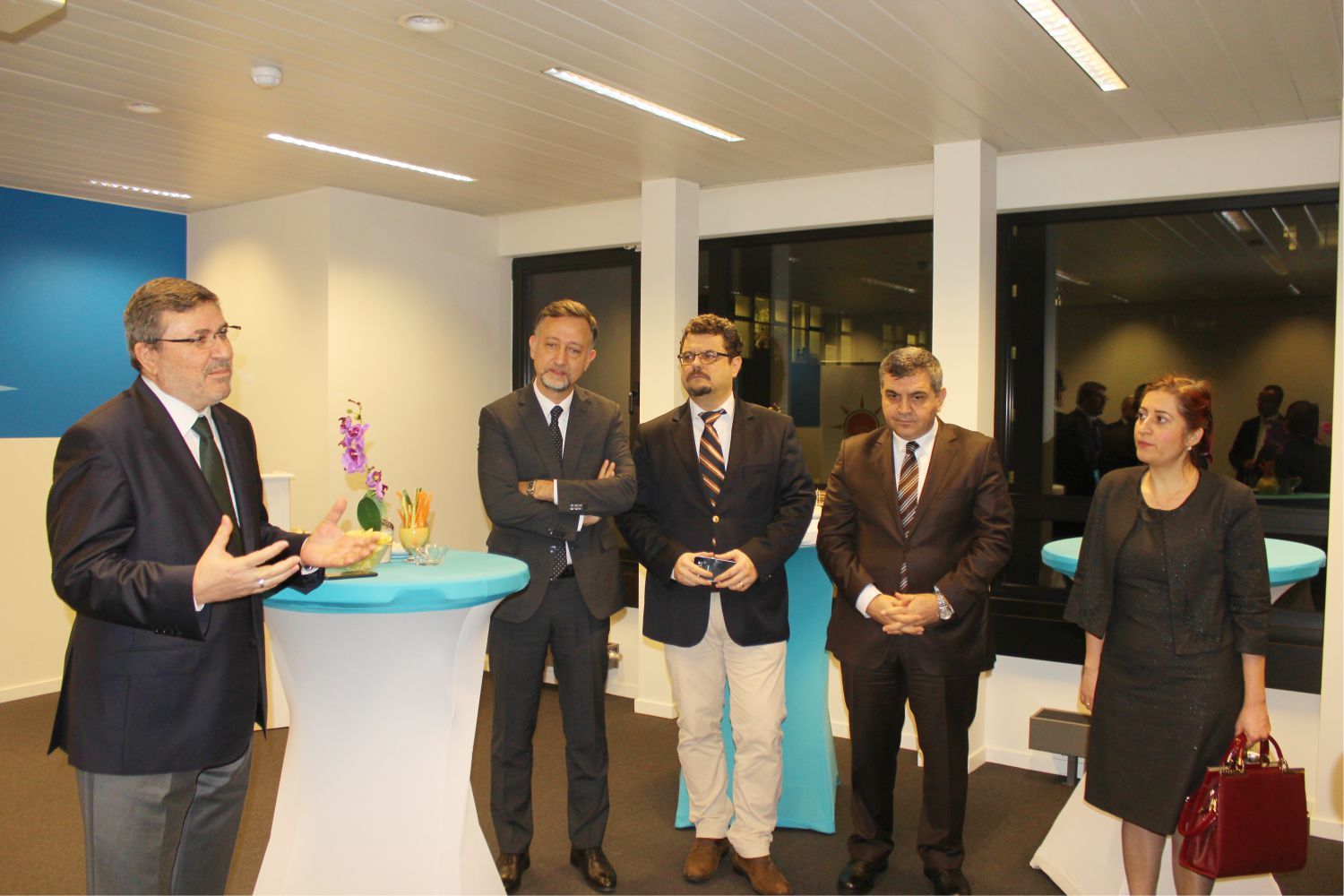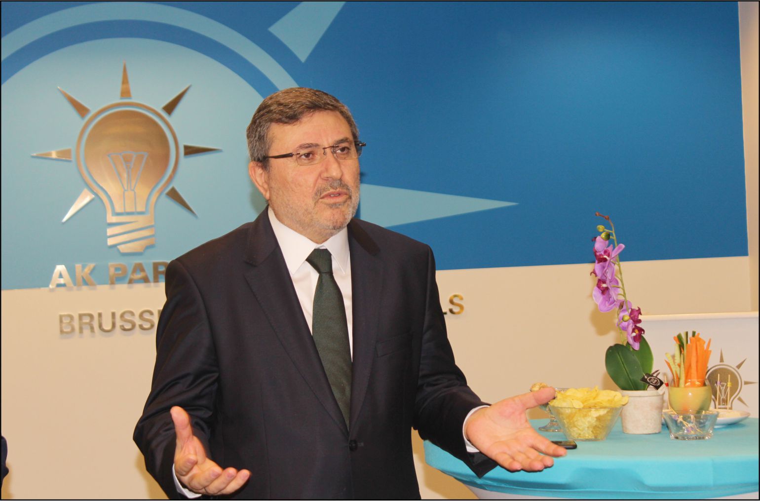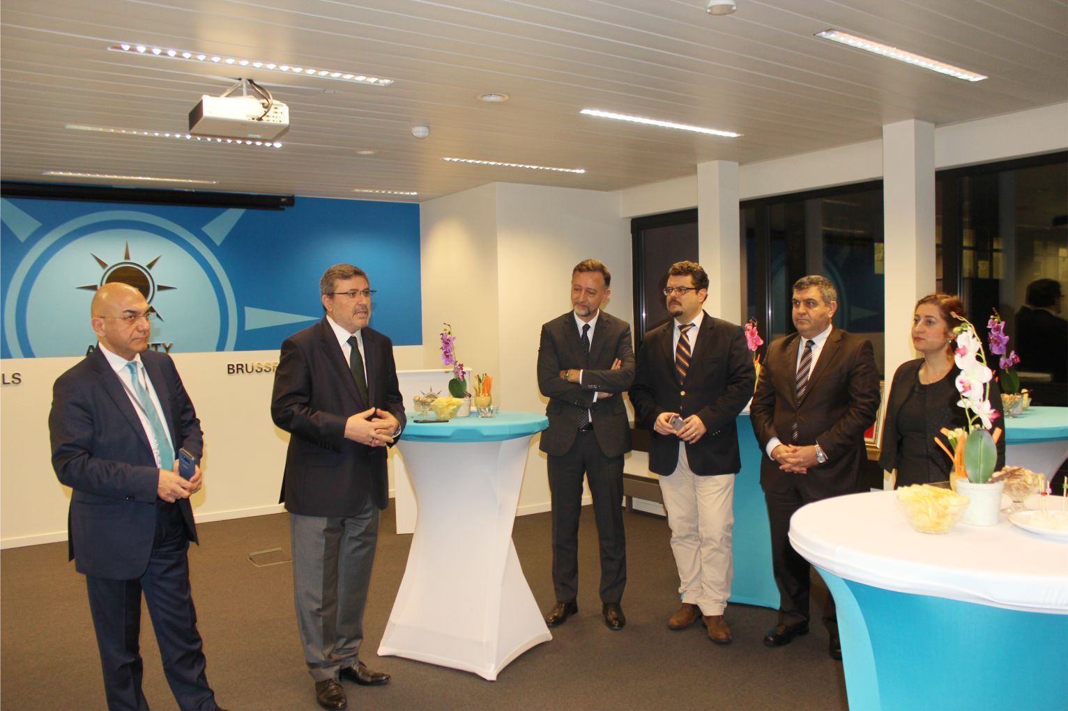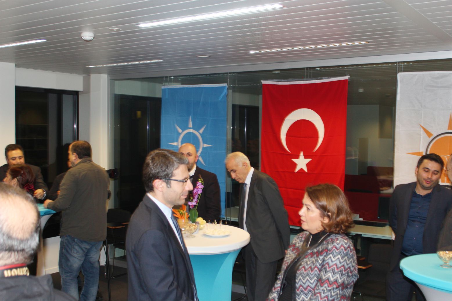 AK Parti Brüksel Ofisinde davetlilerin sıcak karşılanmaları ile başlayan resepsiyonun açılış konuşmasını gerçekleştiren AK Parti Brüksel Temsilcisi Ruhi Açıkgöz,"2018 yılına taze bir başlangıç yapabilmek; ülkemizi en üst düzeyde temsil eden diplomatlarımız, sivil toplum kuruluşu temsilcilerimiz ve medya mensuplarımızla bir araya gelerek hem kaynaşma hemde önümüzdeki süreç için karşılıklı görüş alışverişi yapmak üzere böyle bir resepsiyon düzenledik. Bilindiği üzere son günlerde ülkemiz Türkiye'de başta sayın Cumhurbaşkanımız olmak üzere Hükümetimiz Avrupa Birliği ile ilişkilerin geliştirilmesi yönünde çok sıcak mesajlar veriyorlar. Bizde Avrupa Birliği Parlamento'sunda görüştüğümüz milletvekillerinden 2018 yılında böyle bir beklenti içerisinde olduklarını gözlemliyoruz. Bende bu bilgileri genel merkezimizle paylaşıyorum. Önümüzdeki dönemde bir hareketlenme olacağını ümit ediyorum. Buradaki Türk toplumu açısından hemde bürokrasimiz açısından hareketli bir yıl olacağını tahmin ediyorum." Diyerek davetlilere katılımlarından dolayı teşekkür etti.