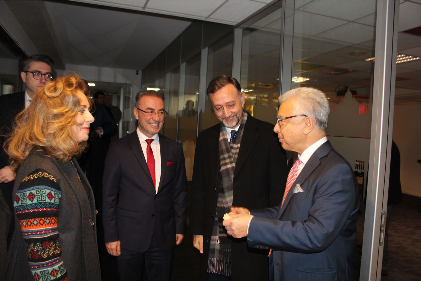 Resepsiyona AB Nezdinde Büyükelçi Faruk Kaymakçı, Brüksel Büyükelçisi Zeki Levent Gümrükçü eşi Sefire Simay Gümrükçü, Büyükelçilik Maslahatgüzarı Engin Solakoğlu, Brüksel Başkonsolosu Dilşad Kırbaşlı Karaoğlu, Federal Milletvekili ve Saint Josse belediye başkanı Emir Kır, Senatör Güler Turan, Schaerbeek belediye başkan yardımcıları Sait Köse, Sadık Köksal, Belçika başbakan danışmanı ve Evere belediye meclis üyesi Belma Tek, sanat camiası, işadamları ve sivil toplum kuruluş temsilcileri katıldı.