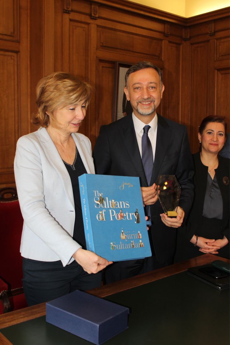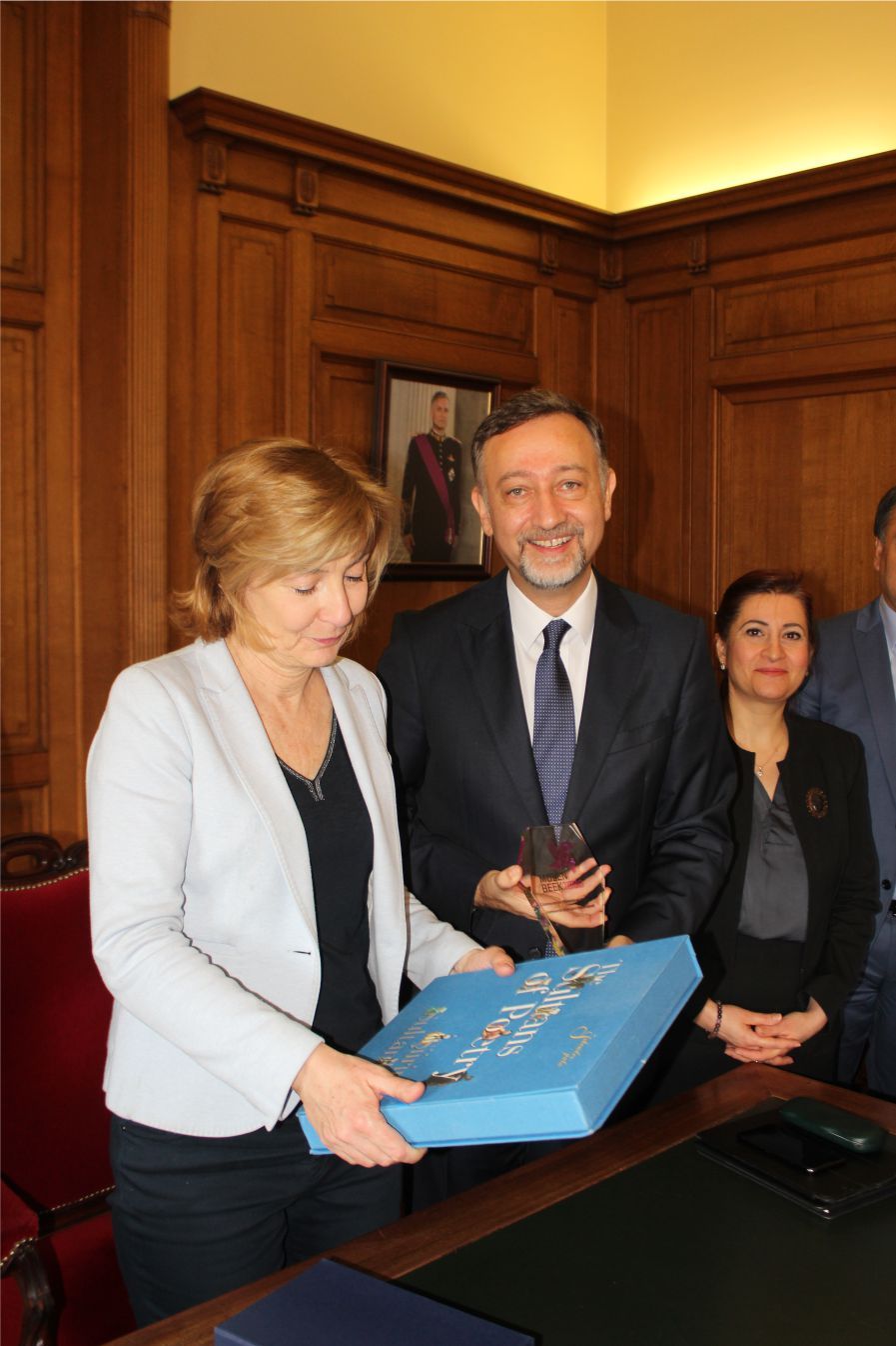 Tekrar bizlere göstermiş olduğunuz sıcak ilgi ve alakaya çok teşekkür ediyorum “ diyerek, Başkan’a kitap hediye ederken, Başkan’da Büyükelçi Gümrükçüye hatıra bir plaket takdim etti.