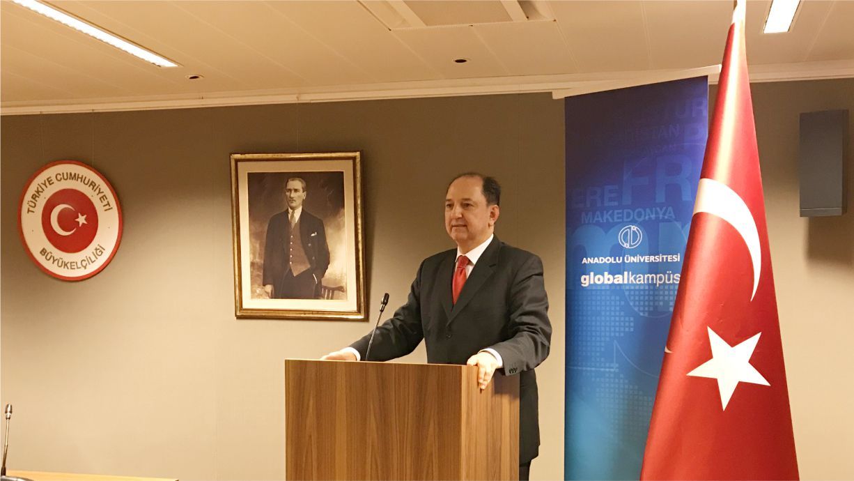Toplantıda Anadolu Üniversitesi Temsilcisi Dr. Öğretim Üyesi Ahmet Atilla Doğan, Anadolu Üniversitesinin Batı Avrupa’daki eğitim-öğretim faaliyetlerinin ayrıntılı olarak sunmuştur. Dr. Doğan sunumu sırasında Açık Öğretim Sistemi, İkinci Üniversite ve Milli Eğitim Bakanlığı işbirliğinde yürütülen programları ayrıntılı olarak anlatmıştır. Dr Doğan; Açıköğretim, İktisat ve İşletme Fakültelerinin Batı Avrupa Programlarında lisans ve önlisans olmak üzere toplam 21 program bulunduğunu, bunların tamamına ikinci üniversite kapsamında kayıt yapılabileceğini belirtmiştir. Gelecek öğretim yılında üniversite öğrencisi olmak isteyenlerin www.anadolu-uni.de adresinden başvuru işlemini gerçekleştirebilecekleri hatırlatıp, seçme sınavı başvurularının 15 Mayıs 2018 günü sone ereceğini ifade etmiştir.