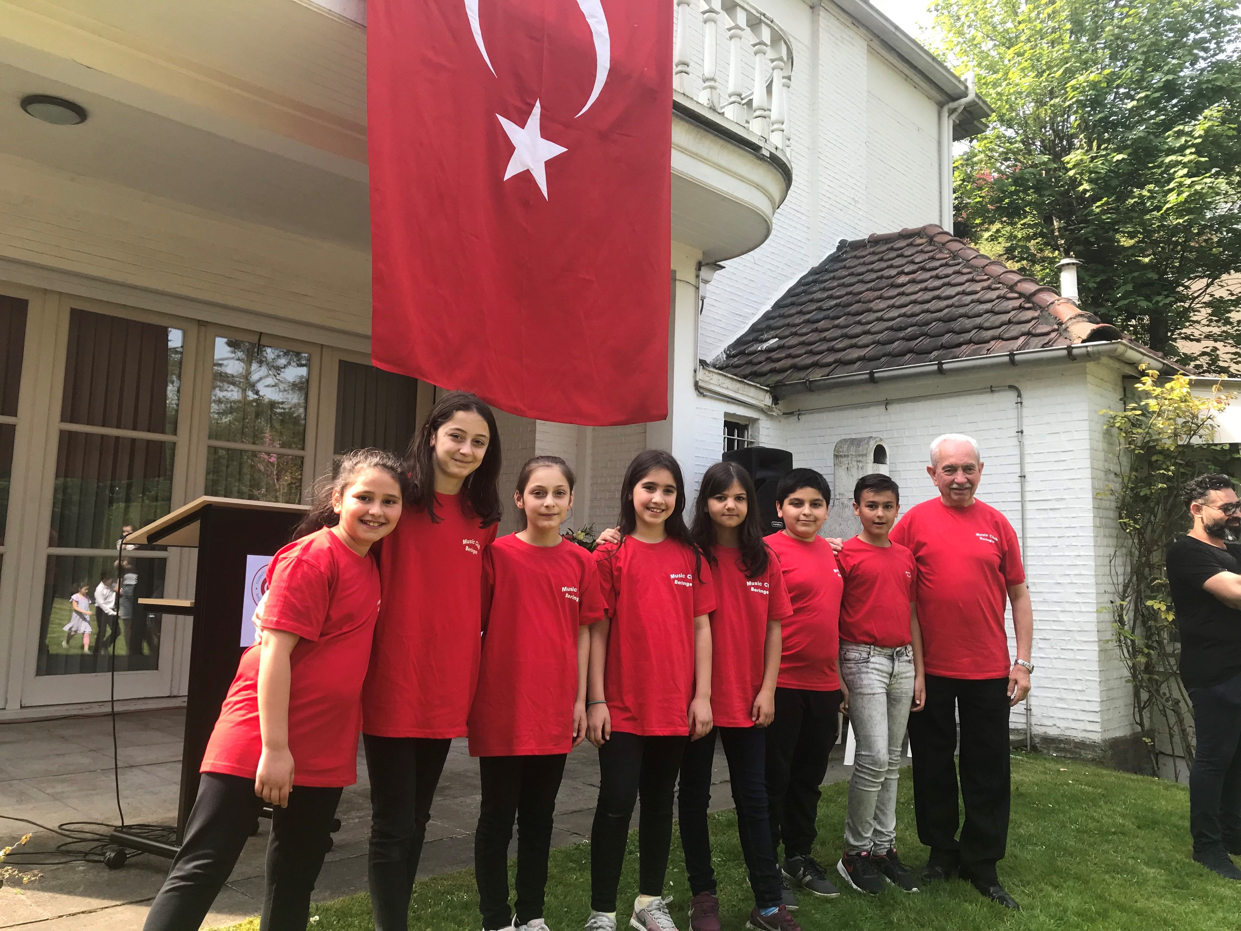 ~T.C. Anvers Başkonsolosu Metin Ergin minik davetlileri ve ailelerini karşılayarak, onlara bayrak ve çeşitli hediyeler takdim etti. Çocuklar okudukları şiir ve gösterilerle büyük coşku yaşadılar. Şiirlerde Türkiye Cumhuriyeti kurucusu Atatürk'e olan 'özlem ve minnet' dile getirildi. Beringen Müzik Kulübü kurucusu ve başkanı İsmail Erdoğdu'nun yönetimindeki saz grubu ise vatan ve kahramanlık türküleriyle bayrama ayrıca renk kattılar.