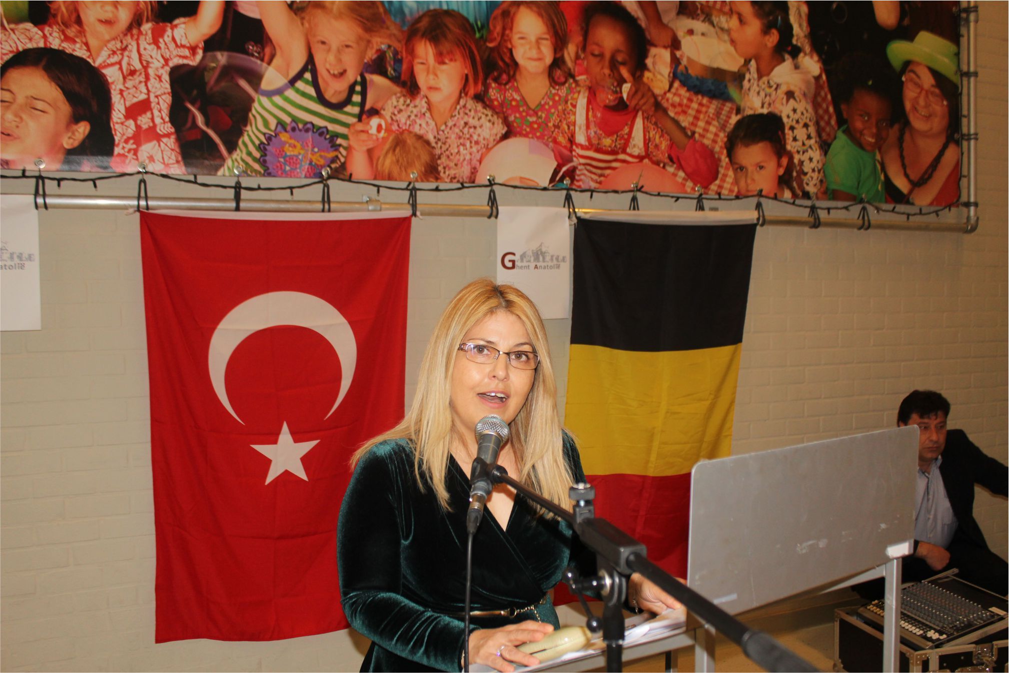 Sunum konuşmasını yapan Genel sekreter ve başkan yardımcısı Rukiye Karakaya, davetlilere teşekkür ederek başladığı konuşmasında, “Farklı projelerle yeni bir dernek olan ‘Ghent Anatolie’ çatısı altında hizmet vereceklerini belirterek, bizler özellikle engelli çocuklara sahip ailelere yardımcı olmak adına yola çıktık. Derneğimizin faaliyet alanları hayli zengin içeriklidir. Amacımız edindiğimiz tecrübeleri toplumumuzda hizmetlere dönüştürerek, vatandaşlarımıza yardımcı olmaktır. Katılım ve desteklerinizden dolayı çok teşekkür ediyorum” dedi.