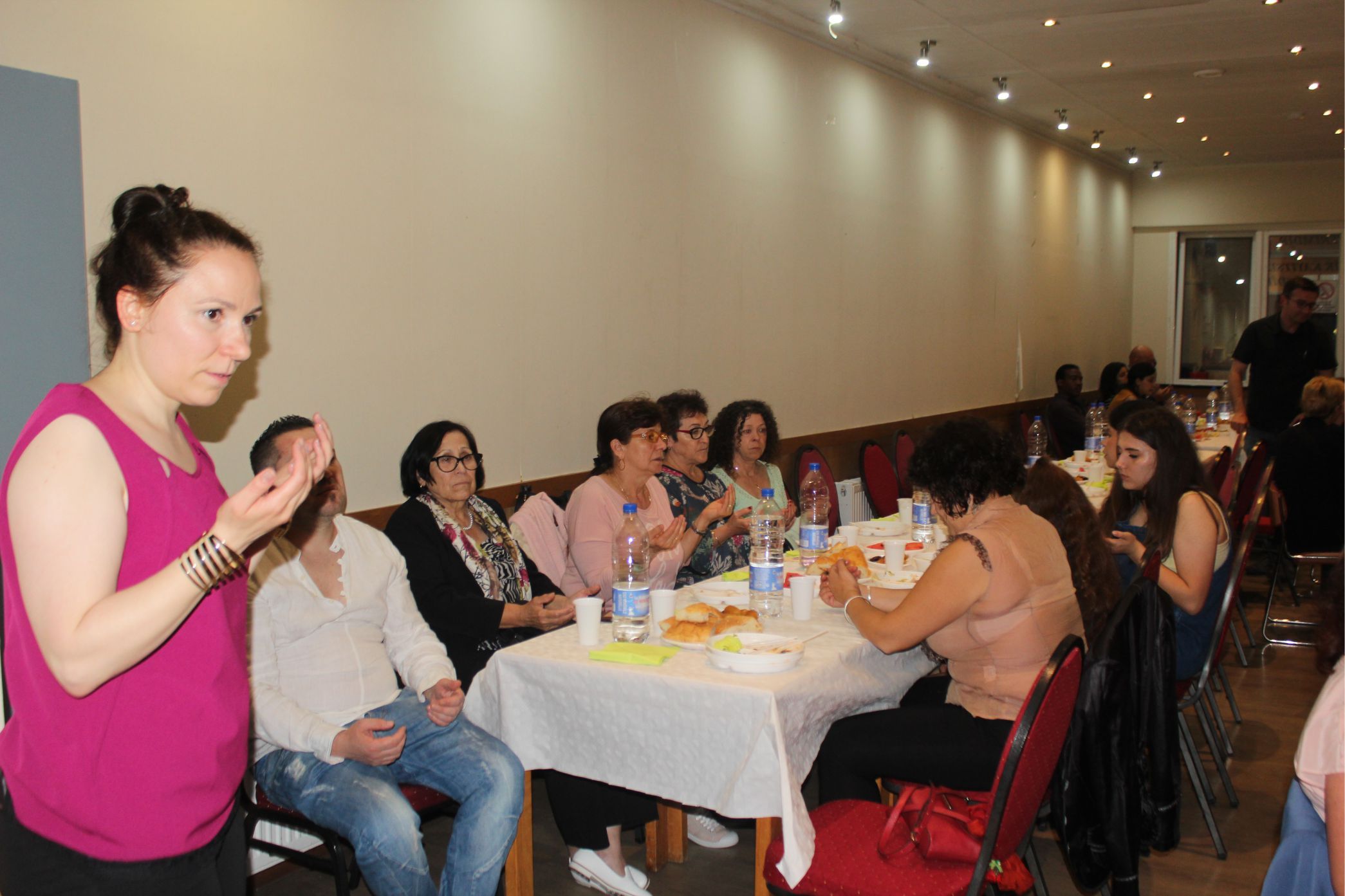 İmece usulüyle düzenlenen iftar programı okunan Kur'an ve edilen dualarla start aldı. İftardan sonra,iftarı düzenleyen Nesrin Mahmoud, yaptığı selamlama konuşmasında bu iftar programını nasıl düzenlediğini duygusal bir şekilde anlattı.