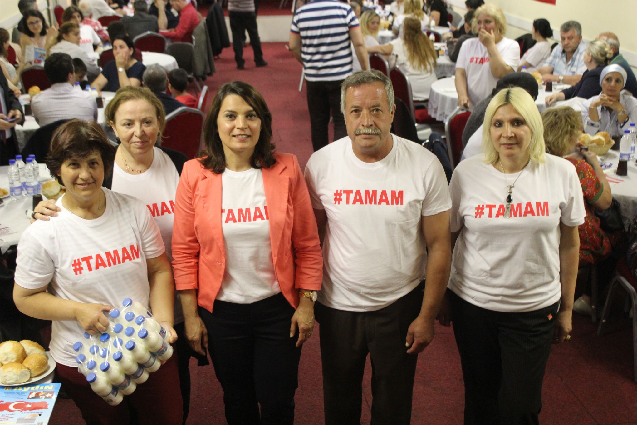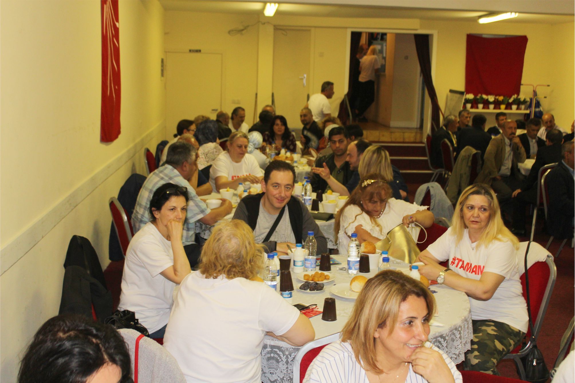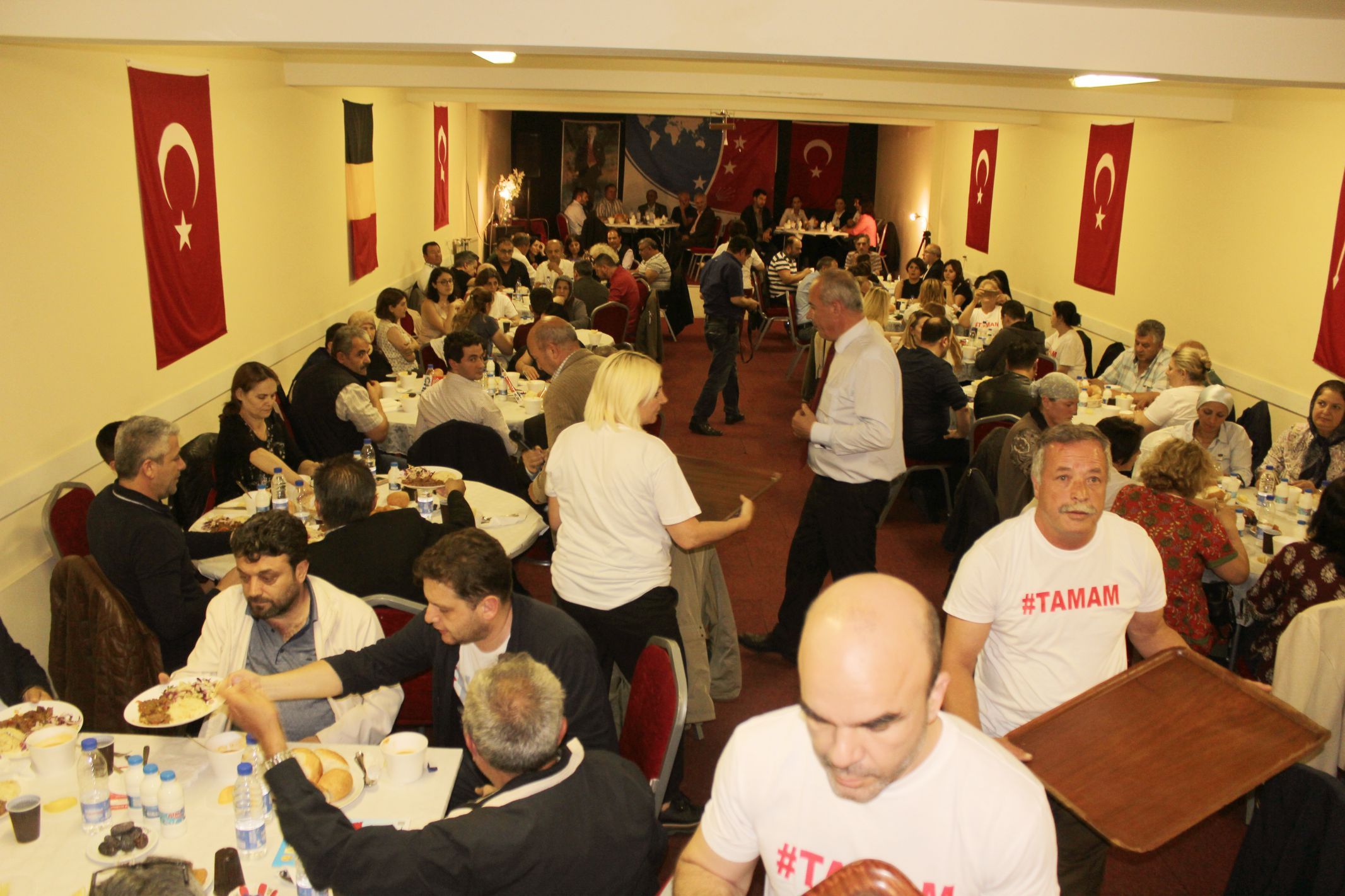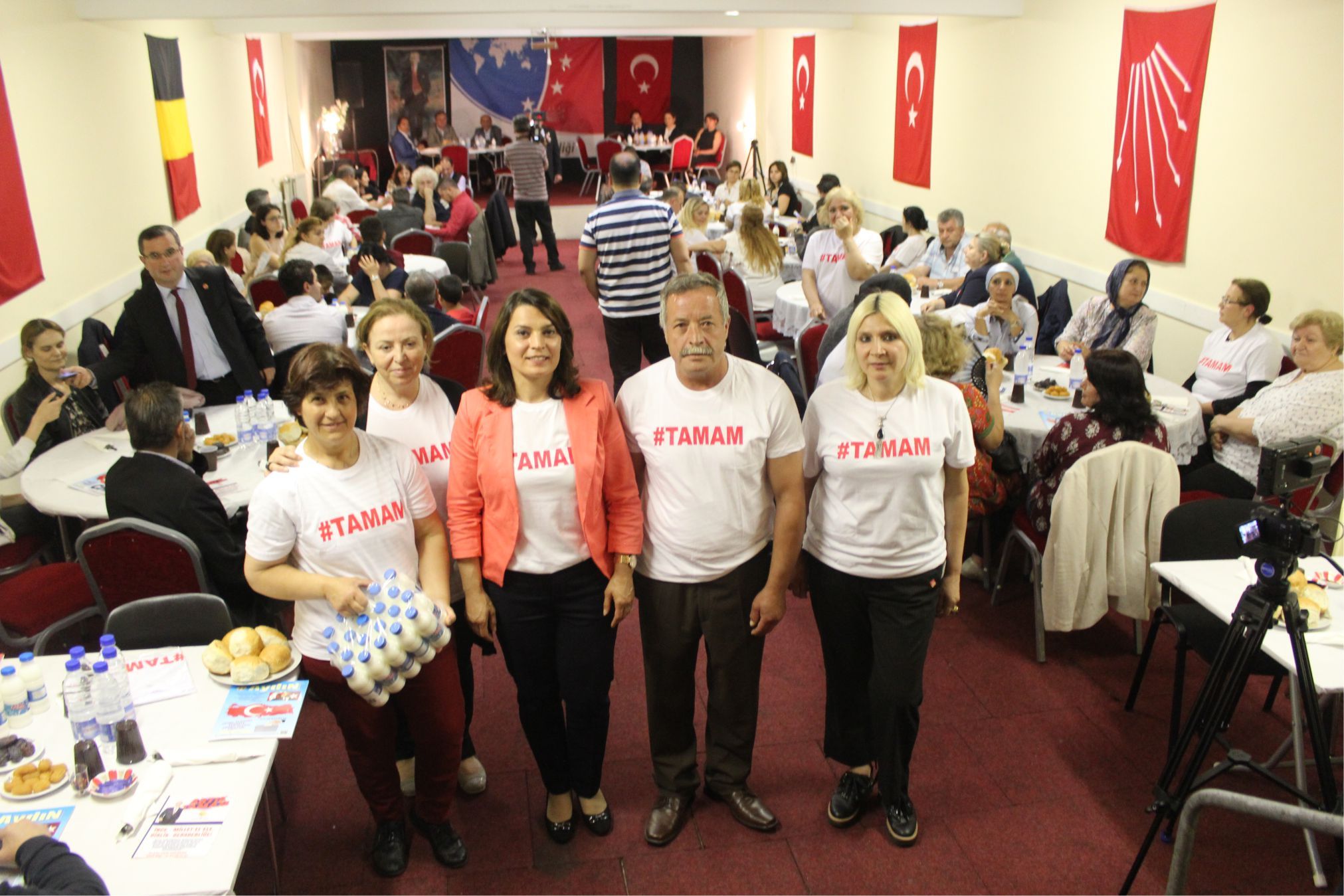 Programa ev sahipliği yapan CHP Belçika Birliği başkanı Hasan Eryürük, CHP Belçika Birliği Kadın Kolları Başkanı Firdez Selvi’nin konuklarını ağırladığı iftara, Schaerbeek belediye başkan yardımcısı Sait Köse, Schaerbeek belediye meclis üyesi Döne Sönmez, Saint Josse belediye meclis üyesi Derya Bulduk, İyi Parti, Saadet Partisi ve CHP’li üyeler katıldı. İftara her kesimden insanların katılması ve hizmet edenlerin ‘TAMAM’ tişörtleri giymesi dikkat çekti.
