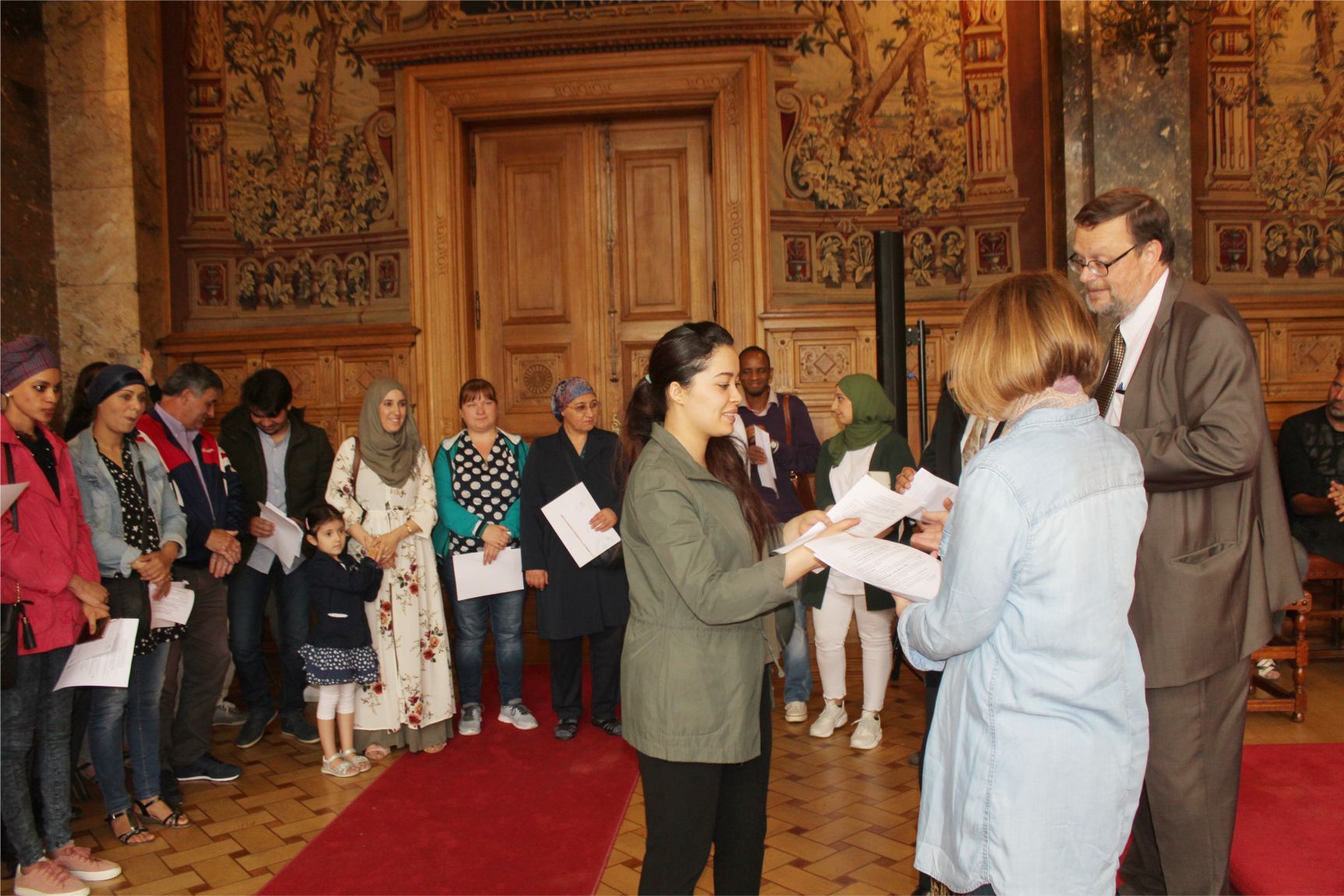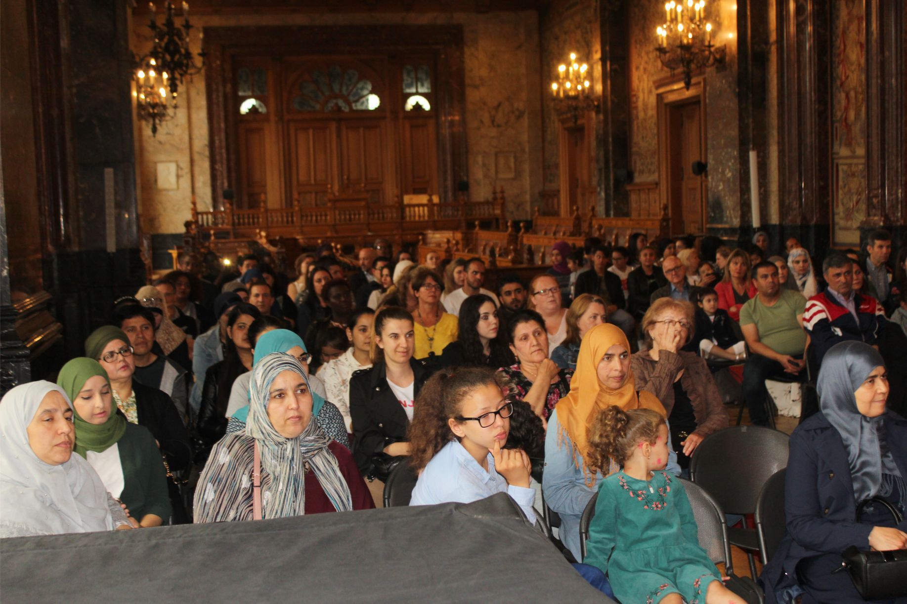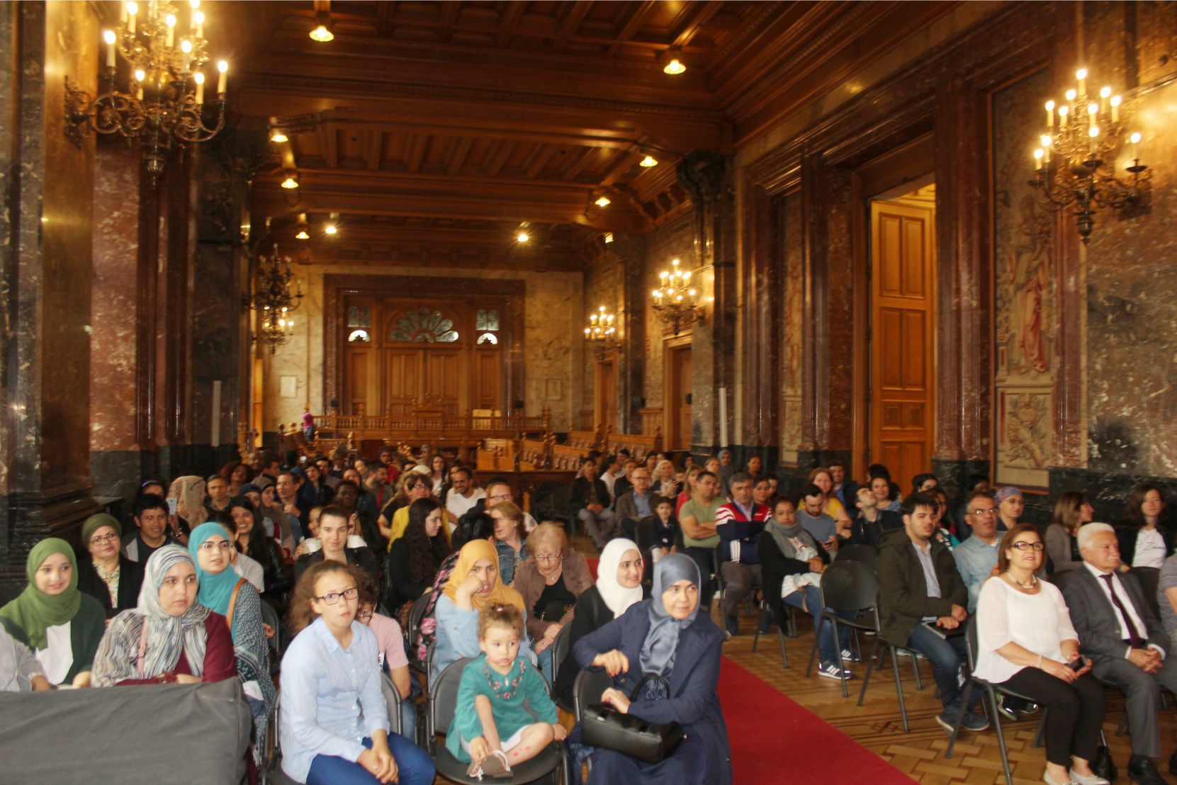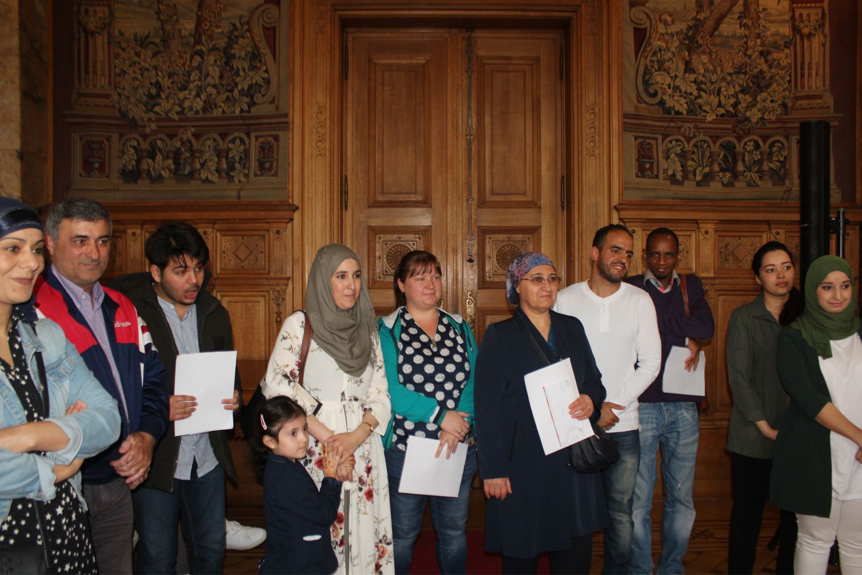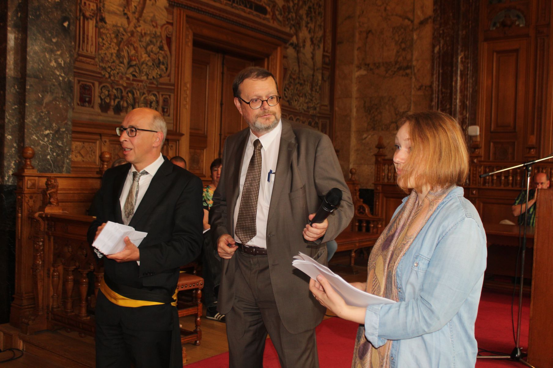 Schaerbeek belediye salonunda gerçekleştirilen sertfika töreninde, Schaerbeek belediyesi Eğitim’den sorumlu başkan yardımcısı Michel De Herde, Ecole de Promotion Social de Schaerbeek Direktörü Jean Louis Brismee ve kurs hocaları birlikte sertfikaları kursiyerlere takdim ettiler.